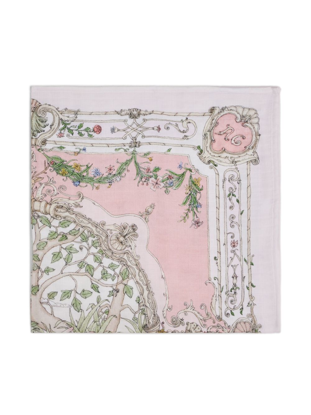 stampa in stile illustrazione in cotone biologico rosa chiaro/multicolore, forma quadrata, bordo rifinito