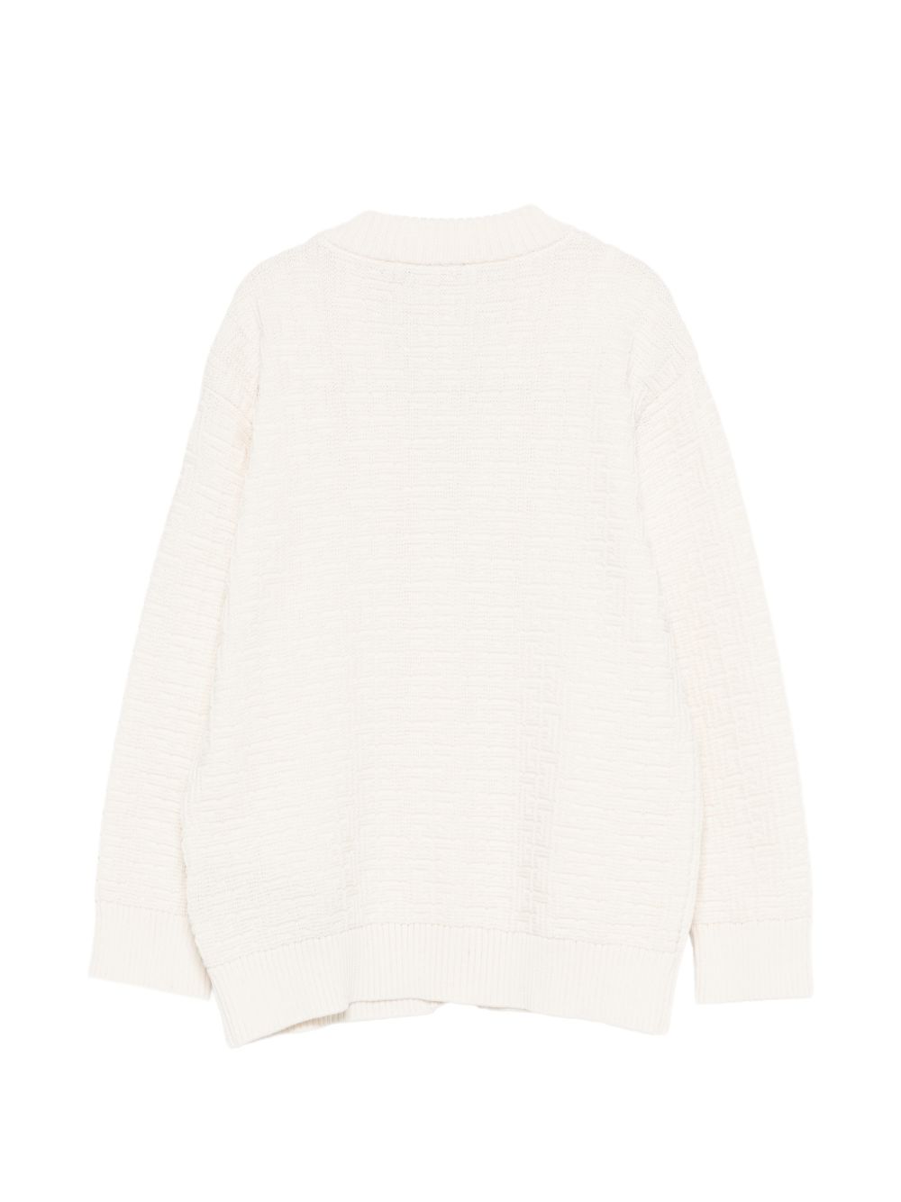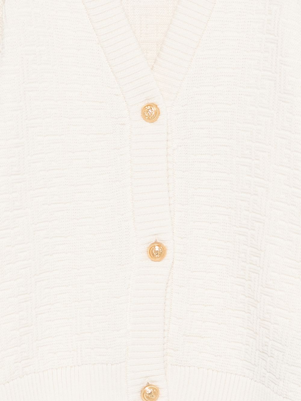 Cardigan bianco opaco, scollo a V, chiusura a bottoni, maniche lunghe, orlo a coste.