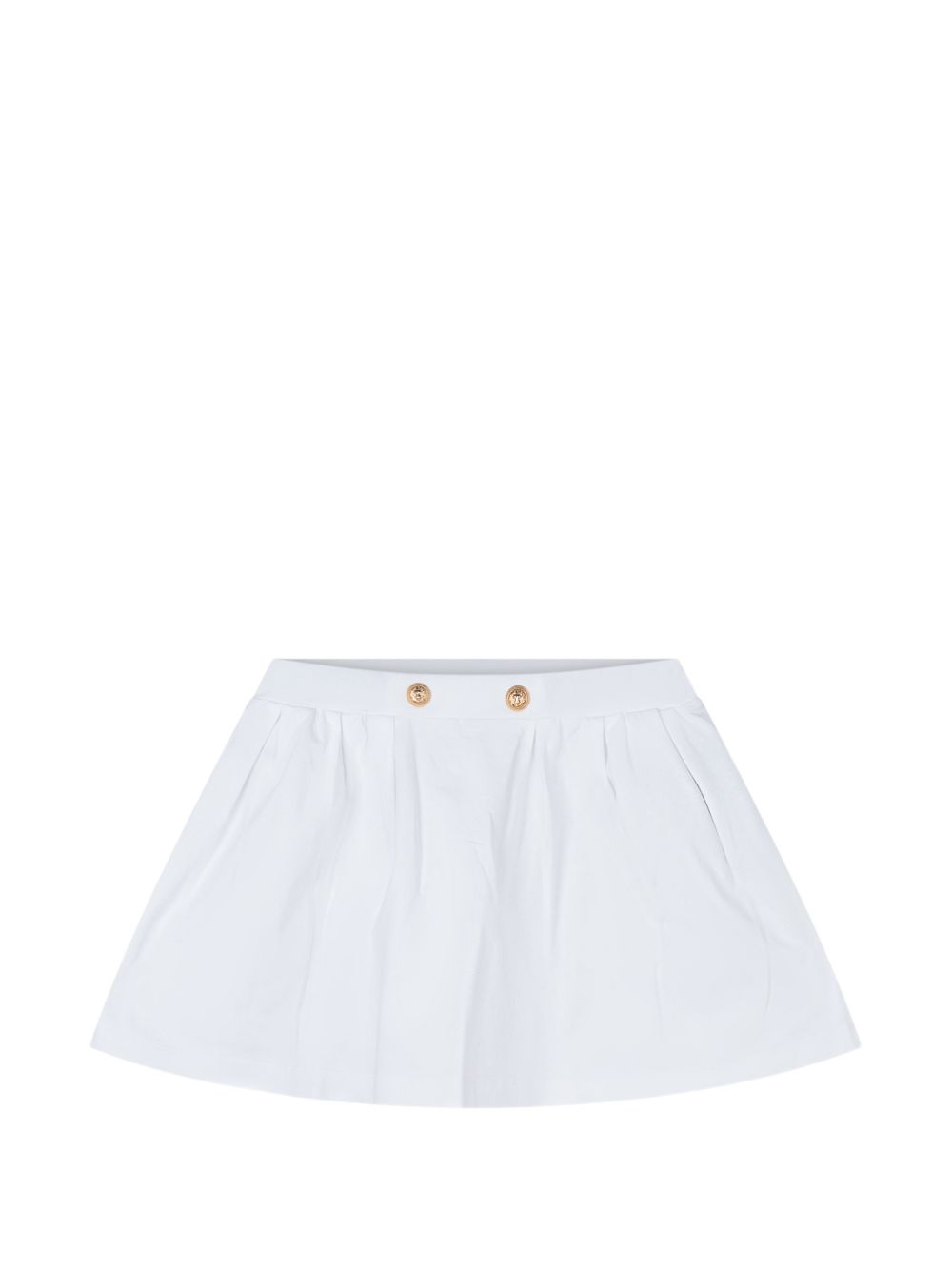 Gonna con dettgli bottoni color oro, bianco, dettaglio plissettato.