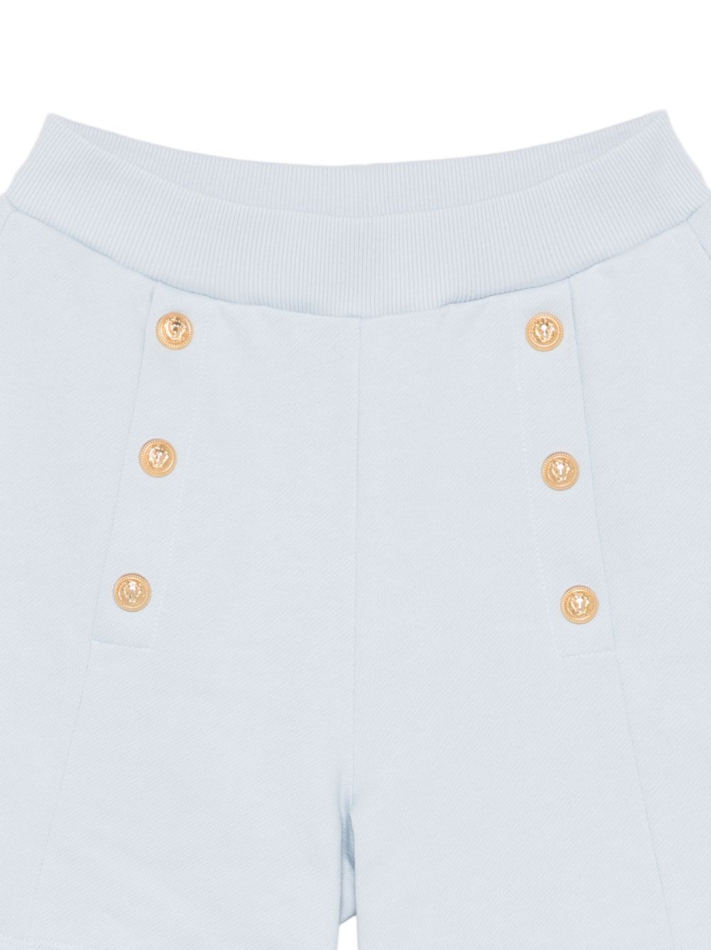 Shorts in cotone, dettagli bottoni, azzurro, vita elasticizzata.