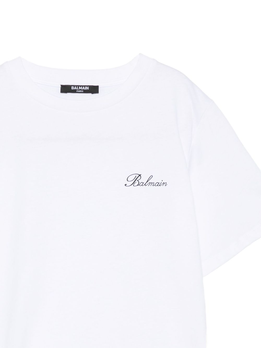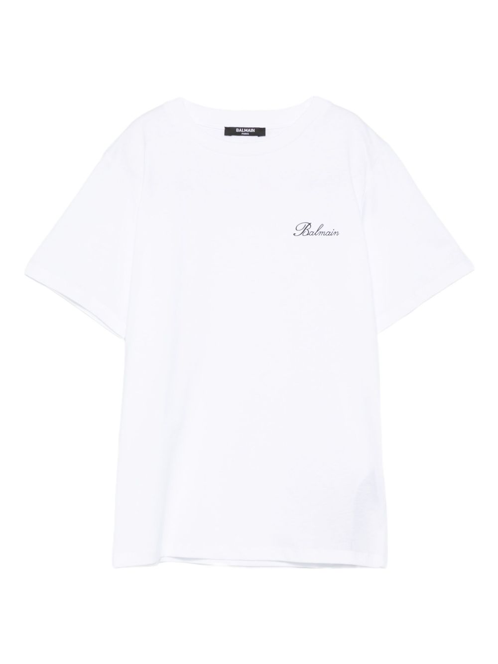 T-shirt girocollo bianco maniche corte bordino a coste materiale in cotone stampa logo Balmain
