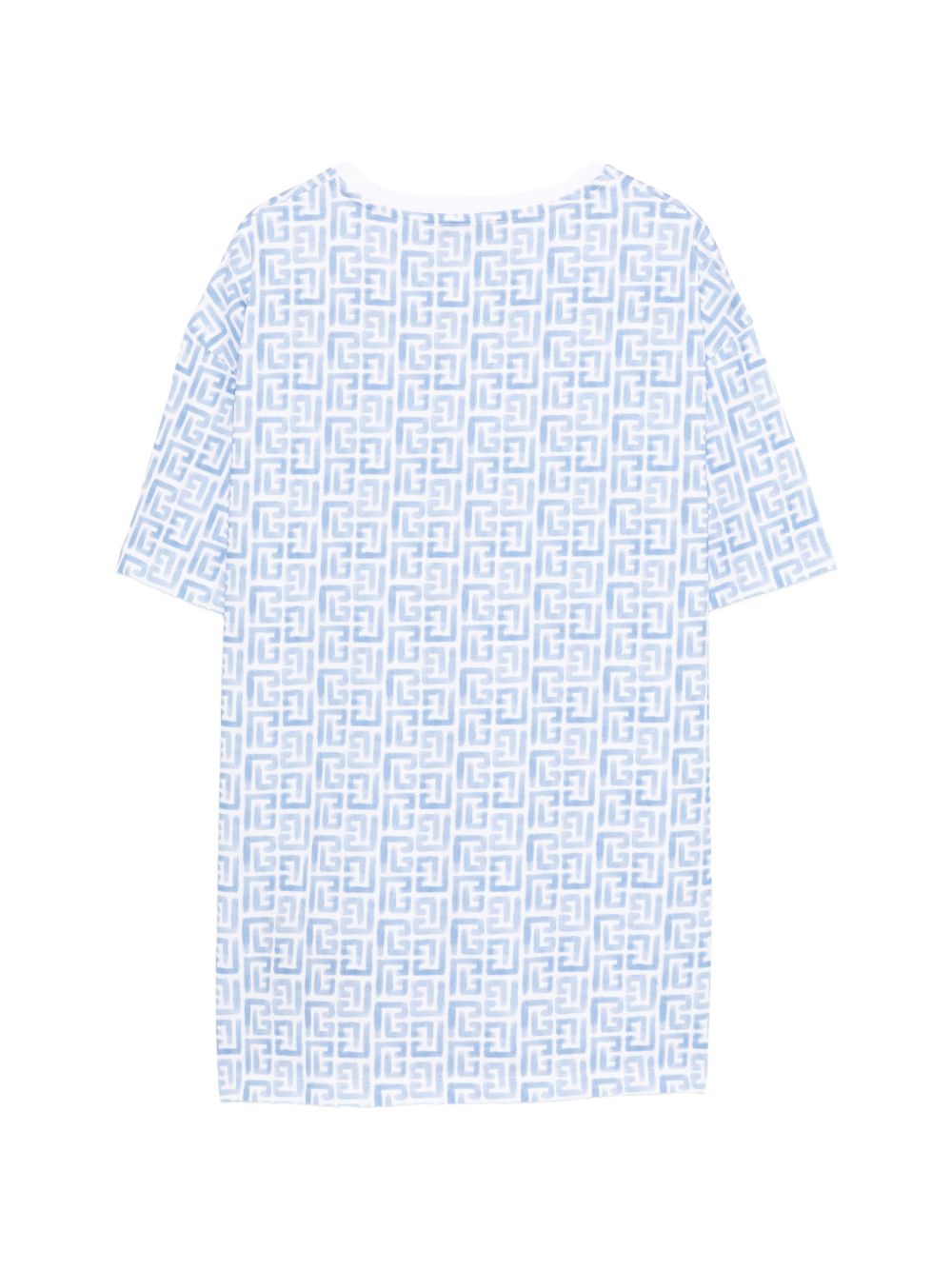 T-shirt biancoaazurro, stampa con logo, girocollo, maniche corte.