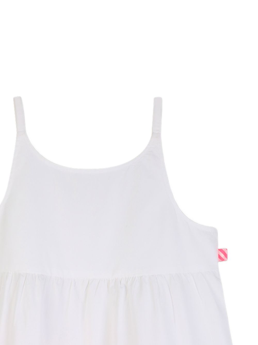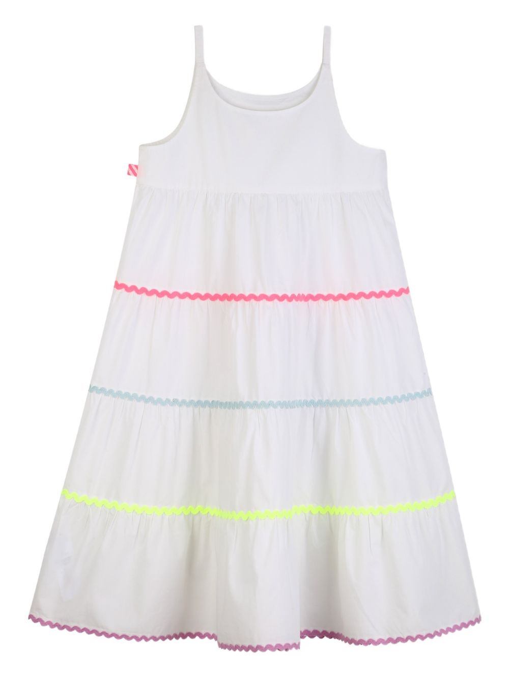 Abito dal design a strati bianco con finiture a rickrack, scollo rotondo senza maniche