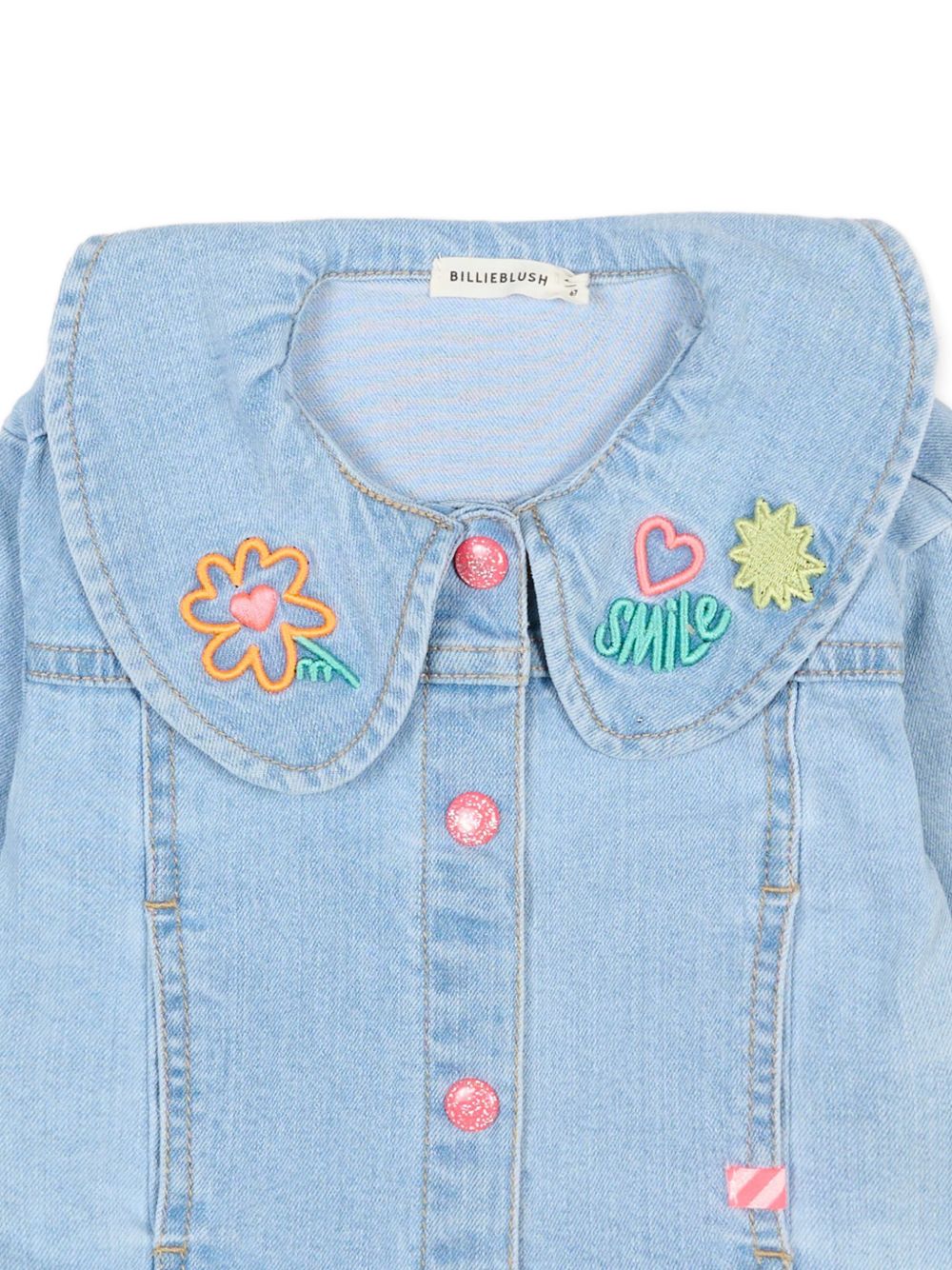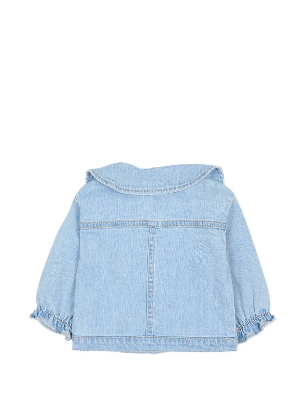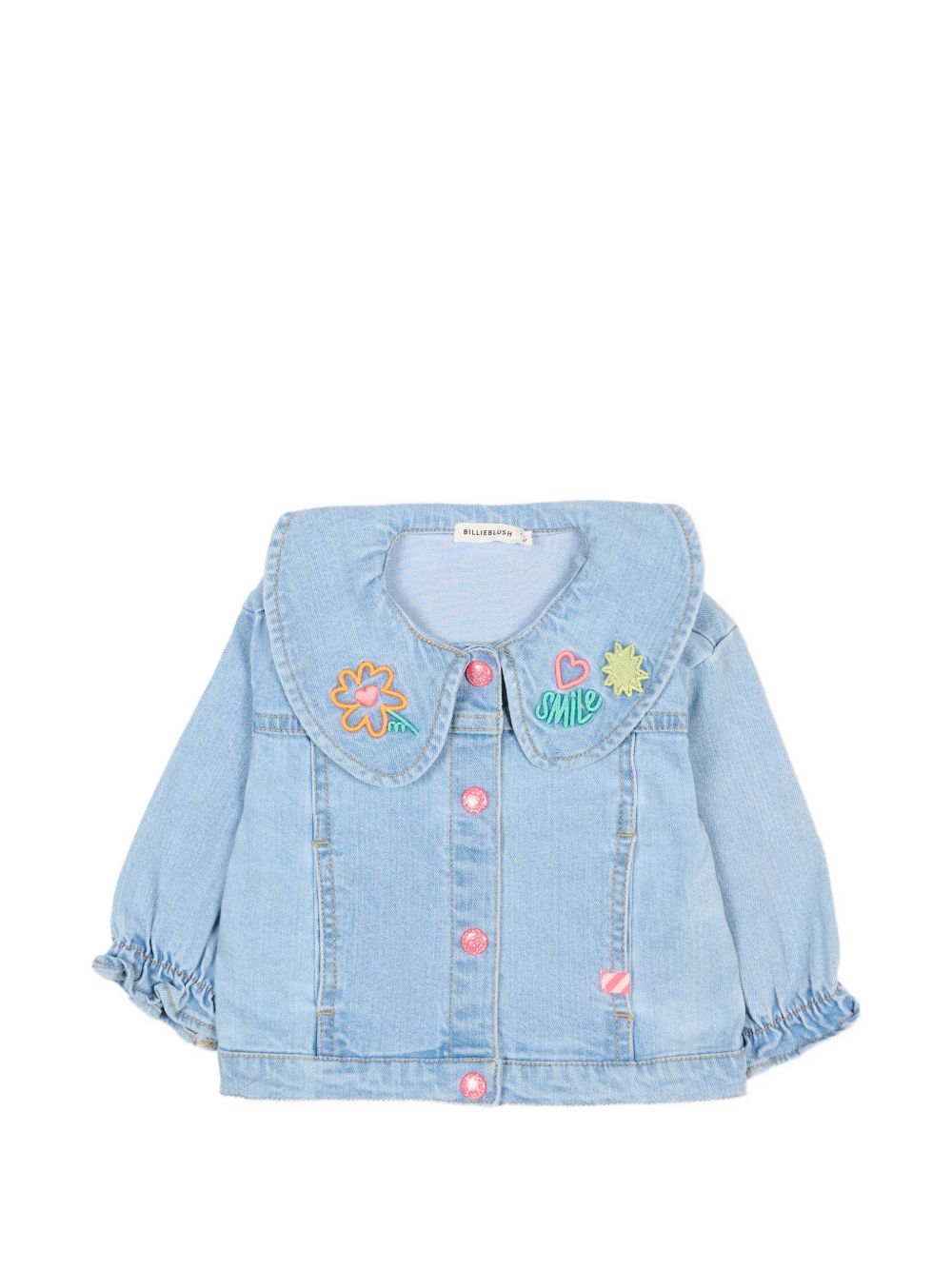 Giacca in denim con colletto oversize con applicazioni , chiusura con bottoni, polsini elasticizzati in cotone