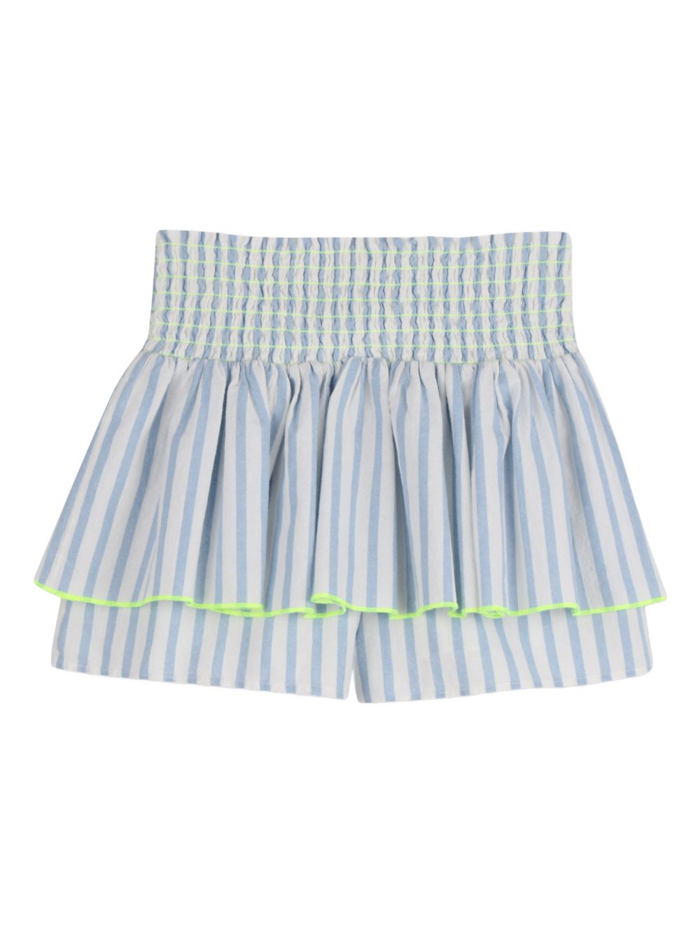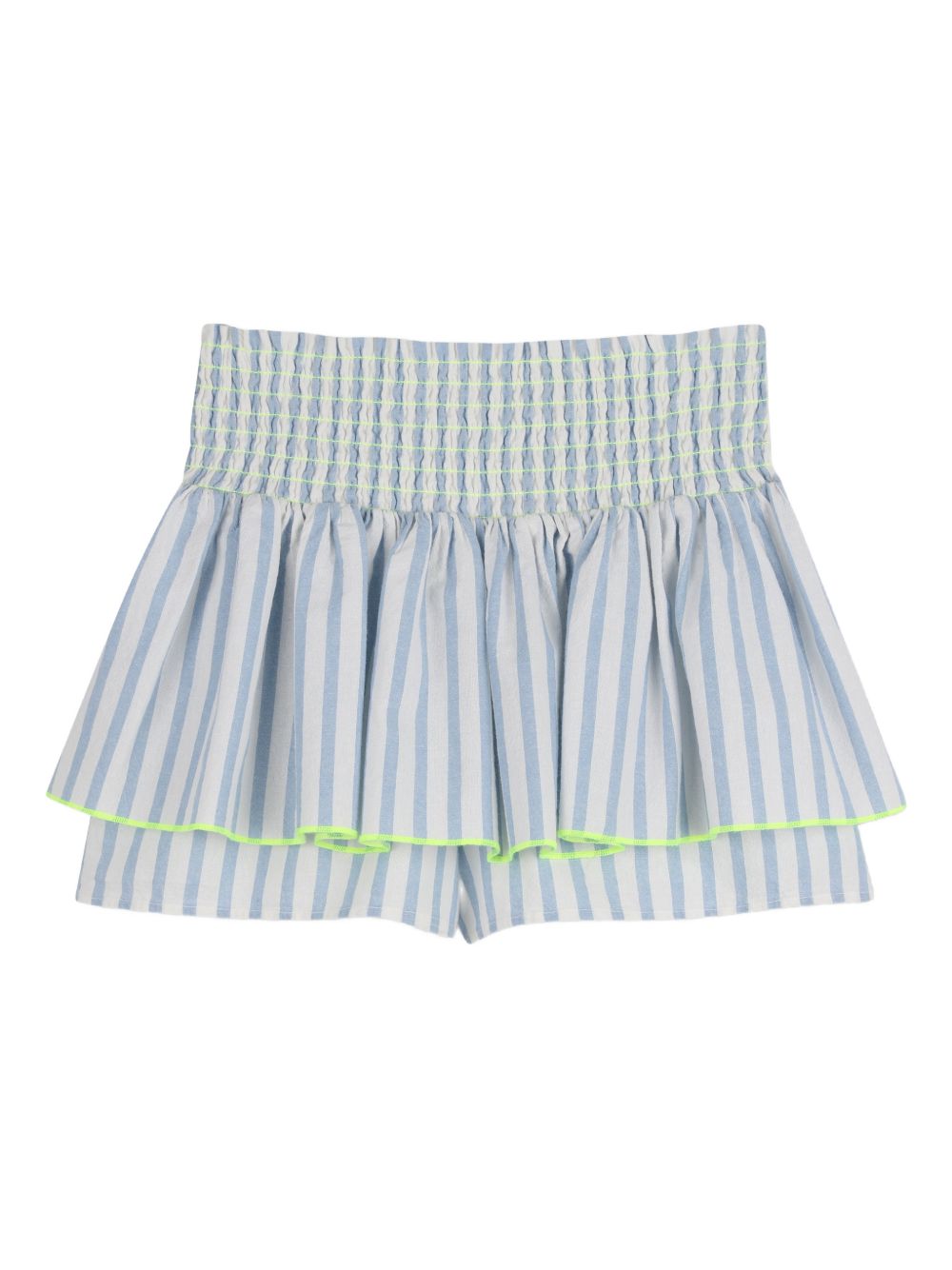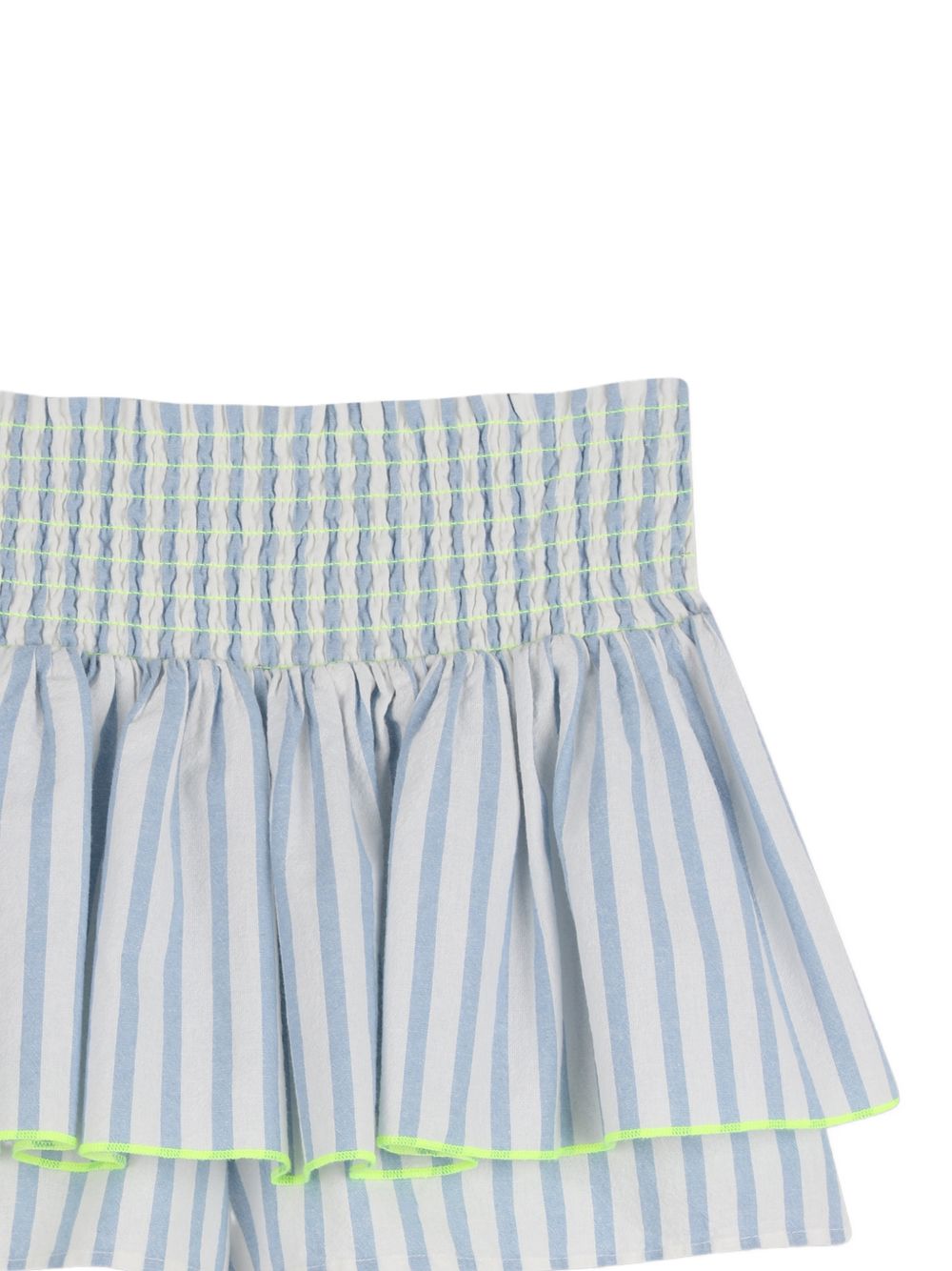 Gonna con elastico in vita con motivo a righe bianche e azzurre, cuciture a contrasto