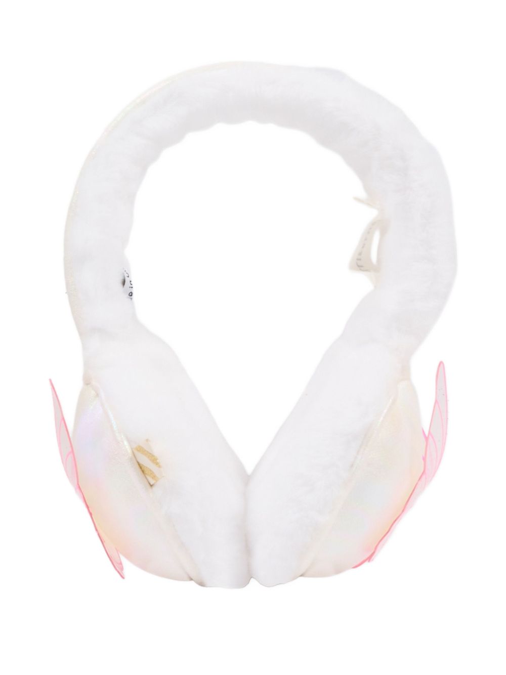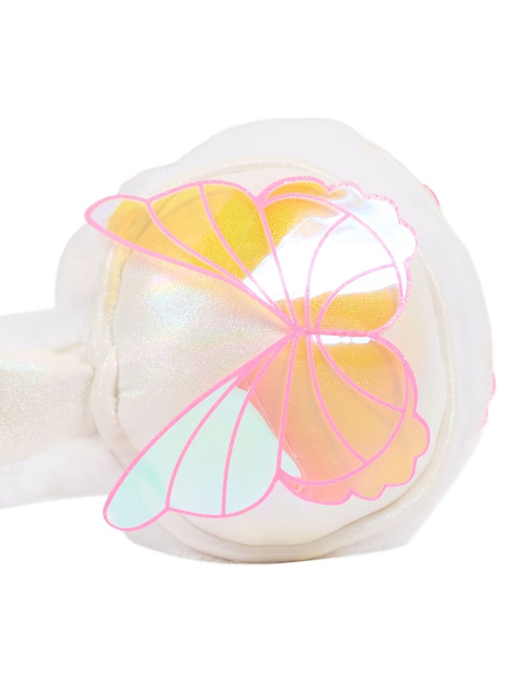 Paraorecchie avorio, dettaglio con farfalle, finitura in pelliccia sintetica.