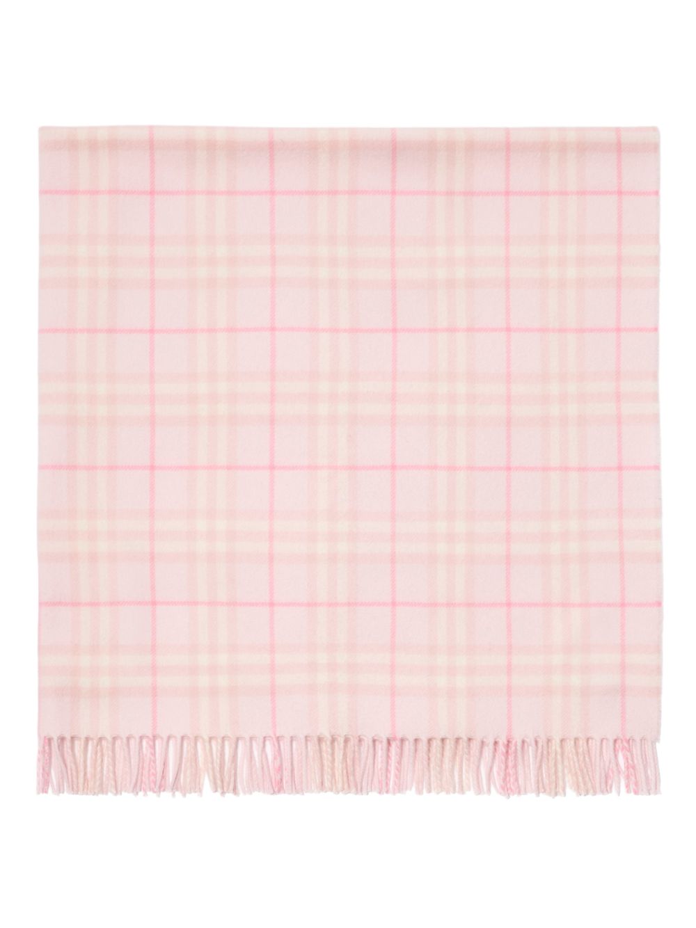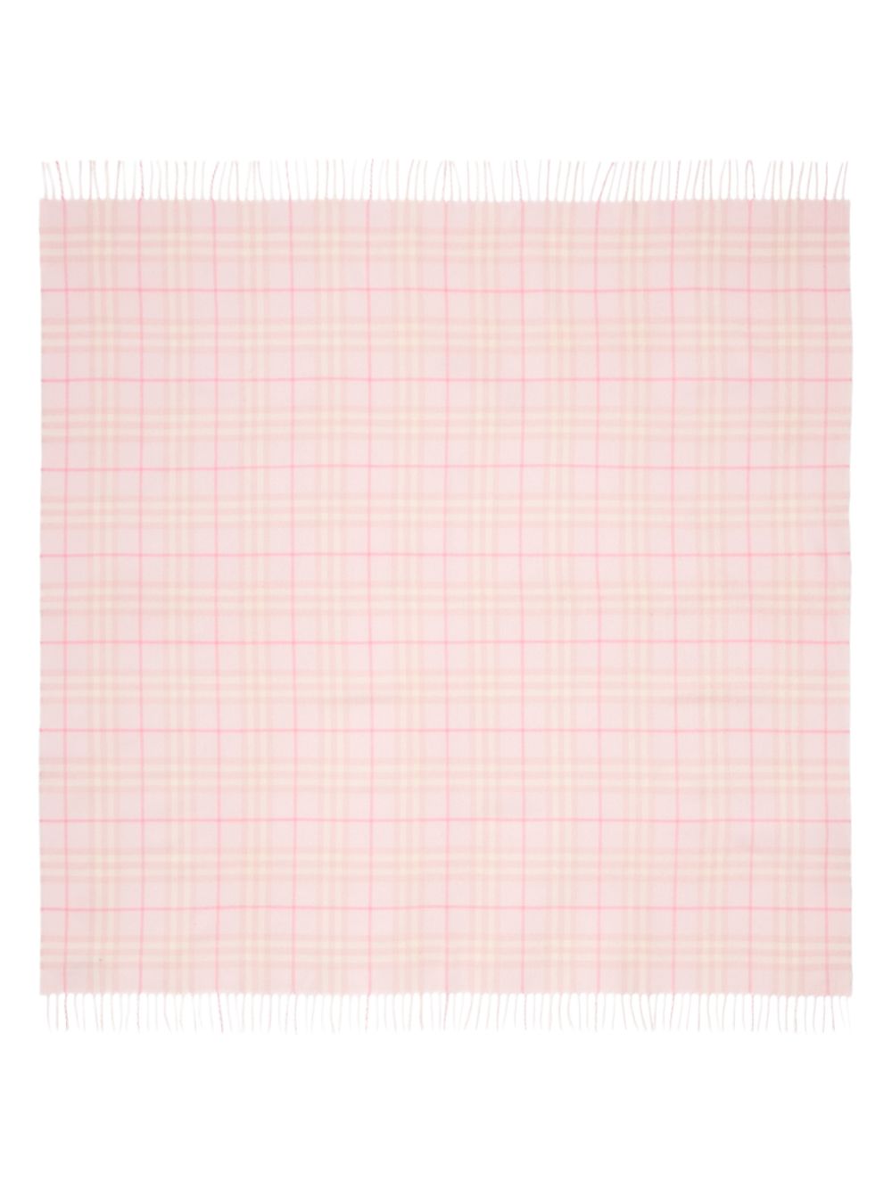 maglia a quadri rosa con bordo sfrangiato, corpo quadrato in lana