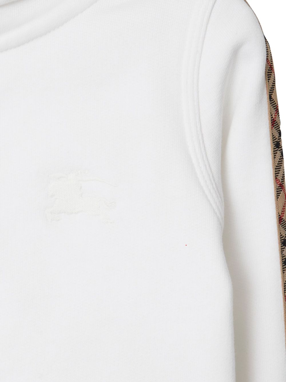 chiusura frontale con zip bianca, cappuccio classico, maniche lunghe, orlo dritto