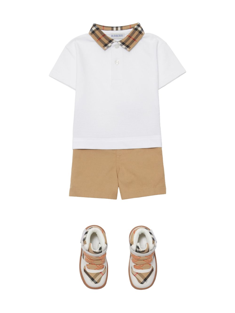 abbottonatura frontale bianca motivo a quadri maniche corte orlo dritto