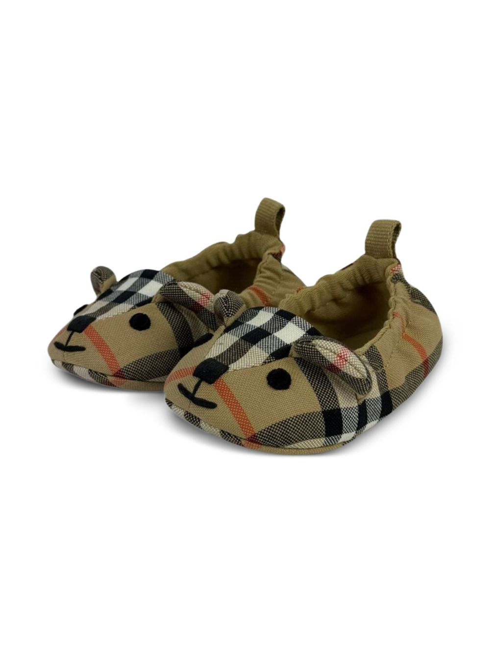 motivo a quadri beige, orecchie di animali a comparsa, linguetta sul tallone