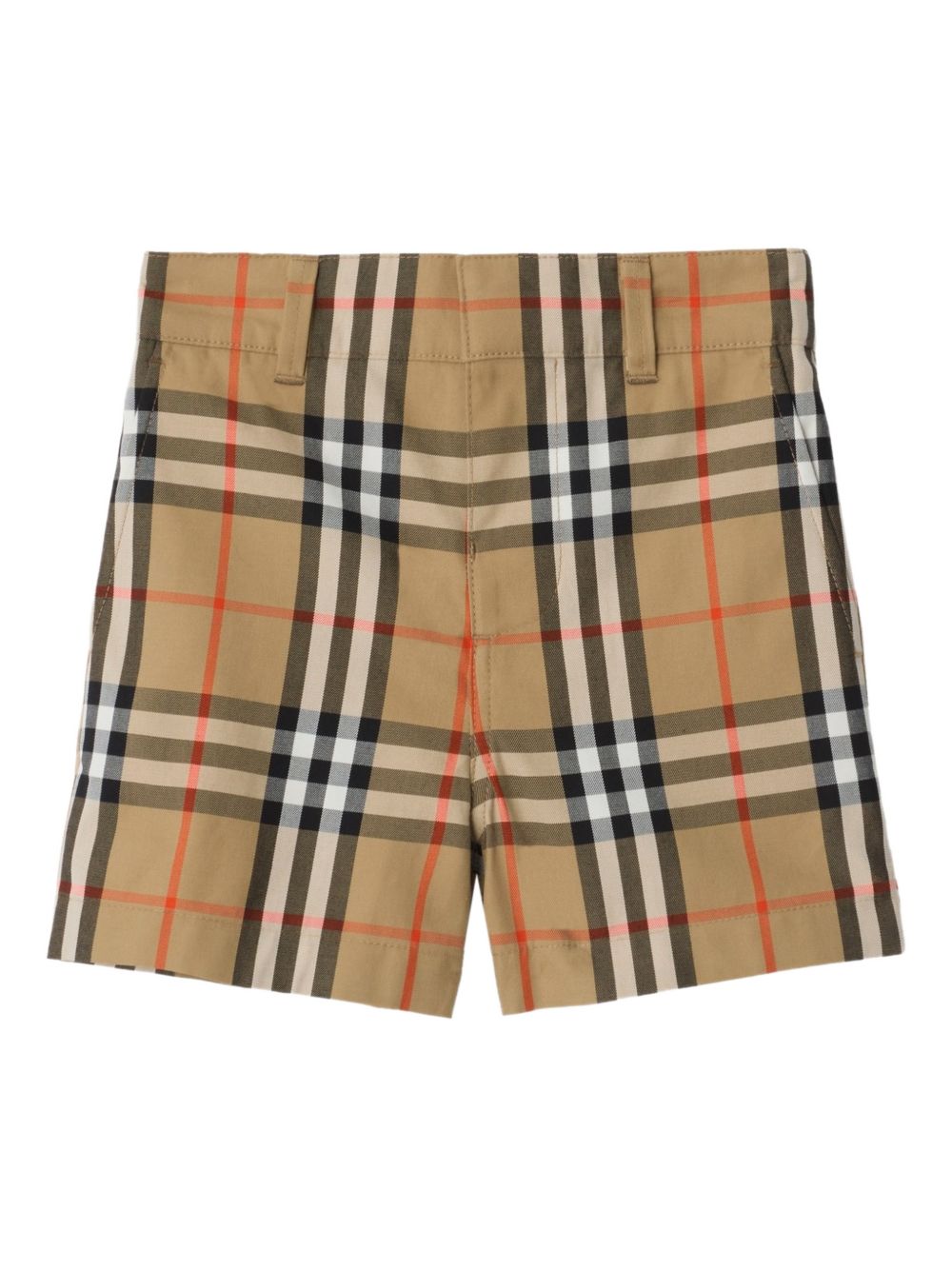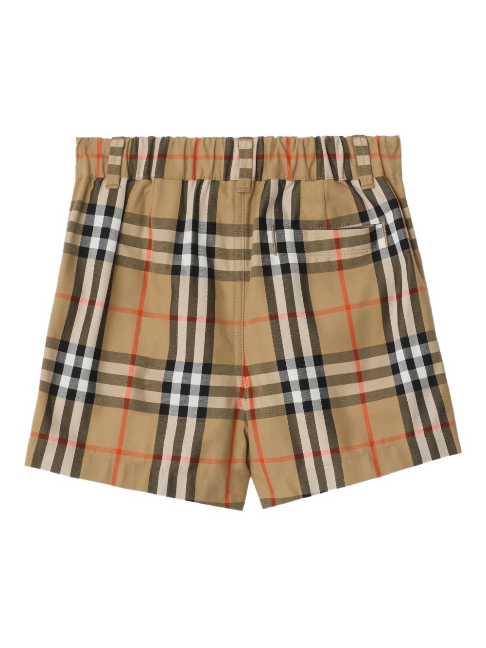 motivo a quadri beige, chiusura con gancio, elastico in vita, tasche laterali, tasca posteriore a filetto