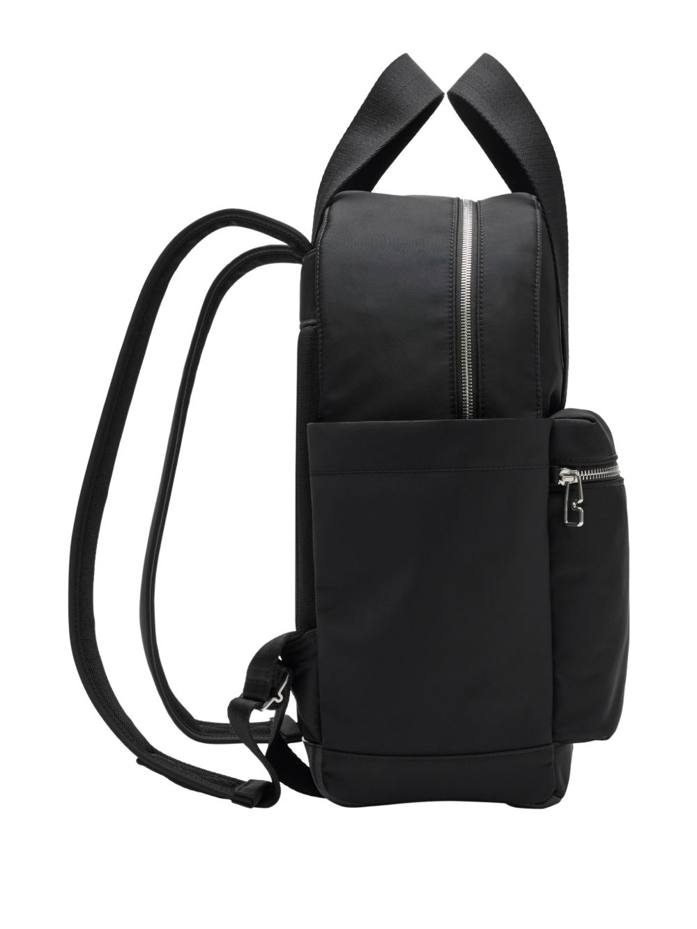 applicazioni EKD nere, finiture in pelle, manici superiori, spallacci regolabili, tasca con cerniera, include fasciatoio a quadri