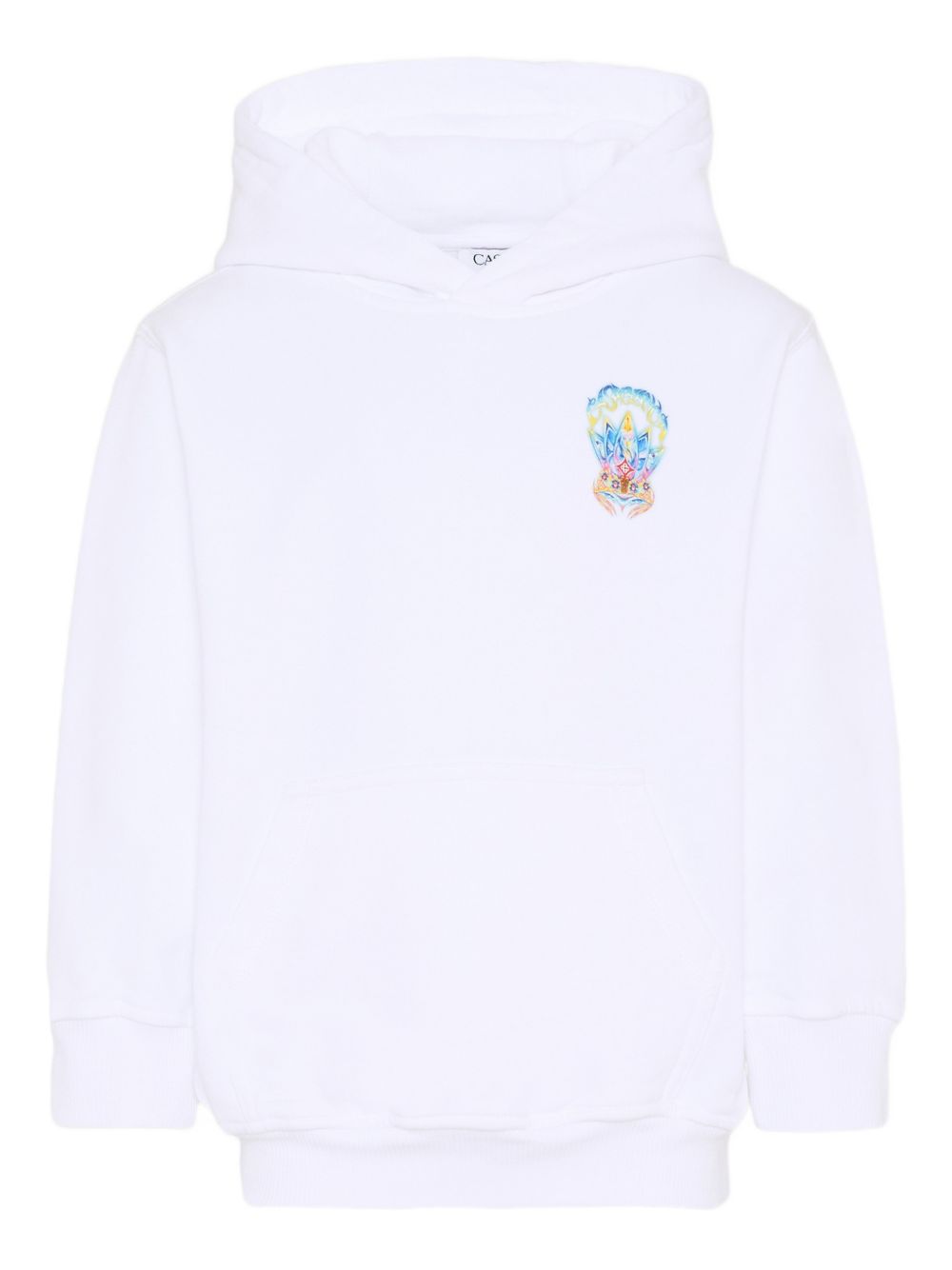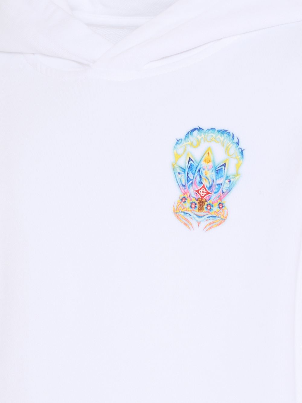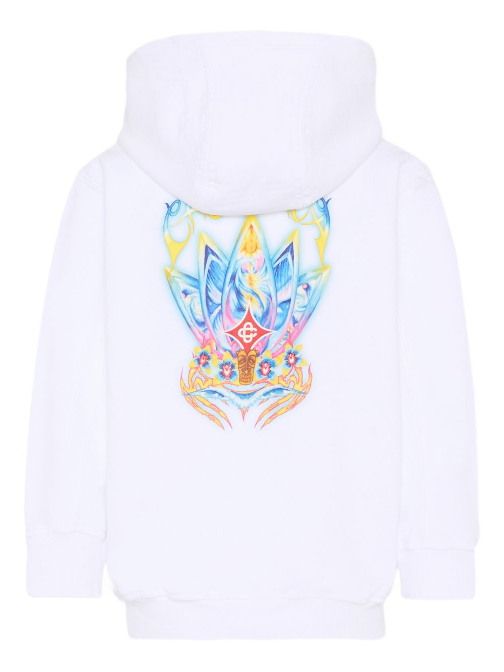 stampa grafica bianca, design con cappuccio, maniche lunghe, polsini a coste, orlo a coste