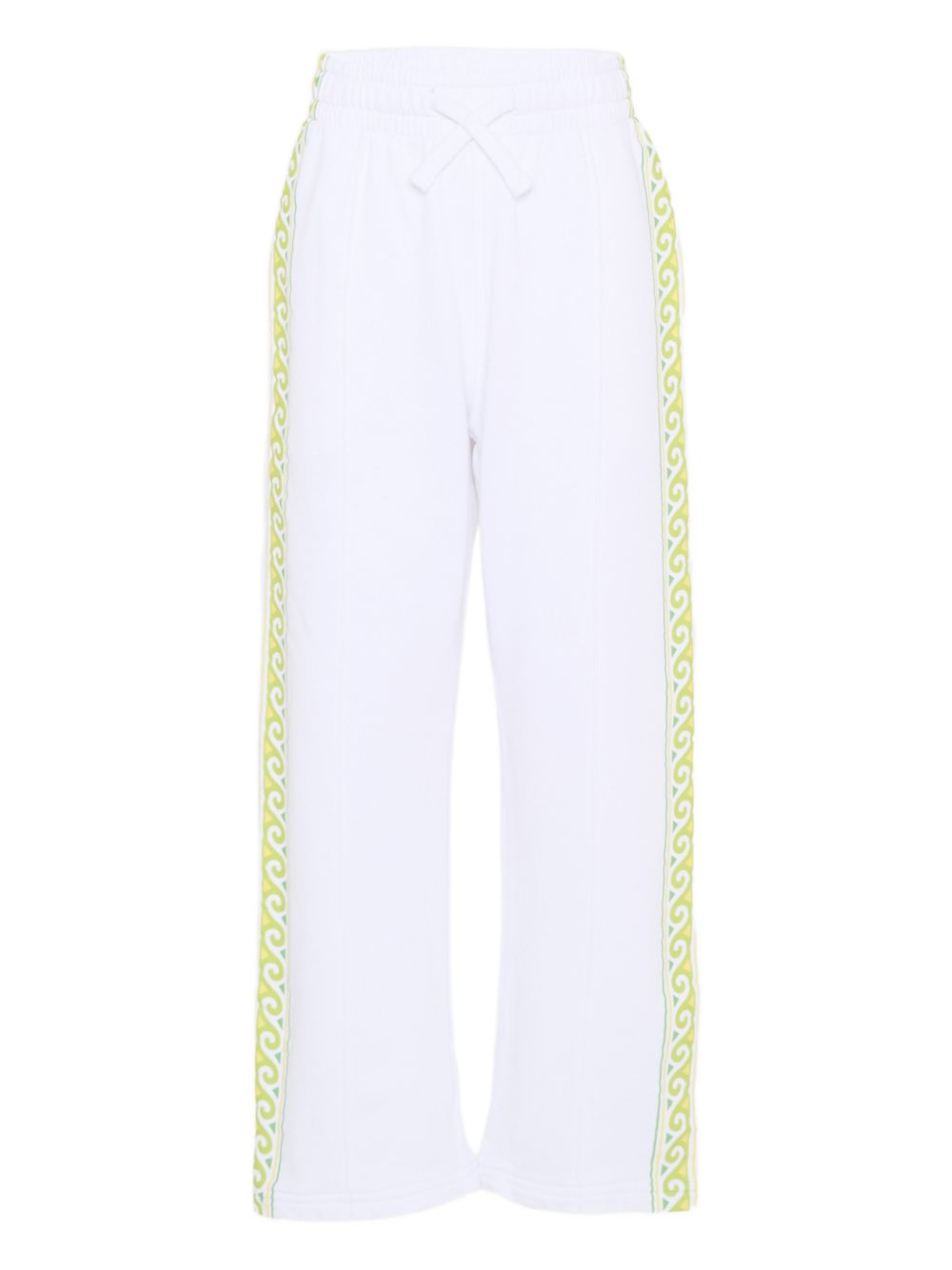 stampa a onde bianche, chiusura con coulisse, cucitura laterale, gamba larga