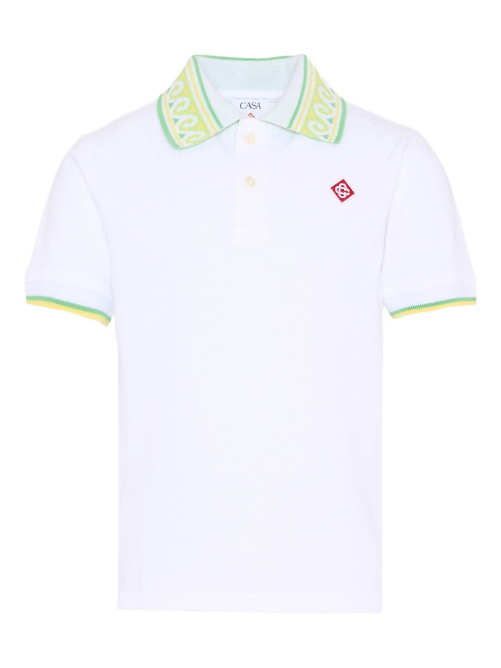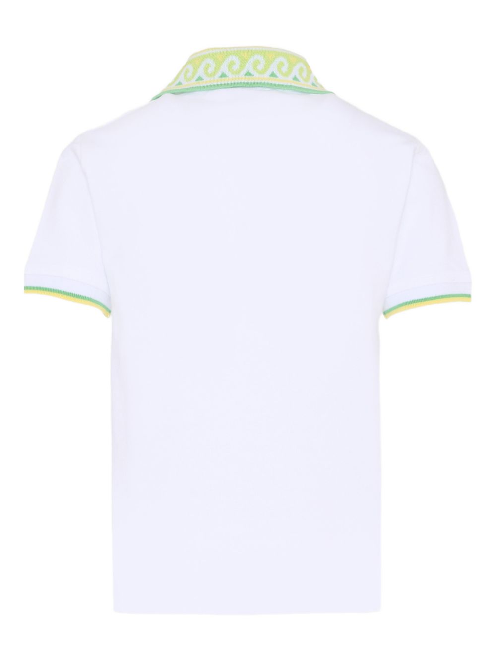 colletto bianco ricamato maniche corte bordi a costine toppa con logo