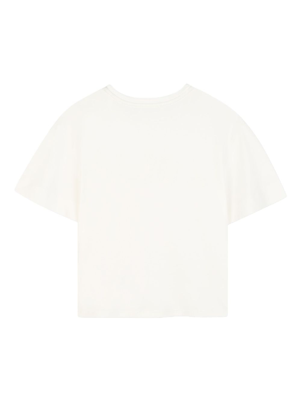 dettaglio logo ricamato color avorio girocollo maniche corte vestibilità comoda