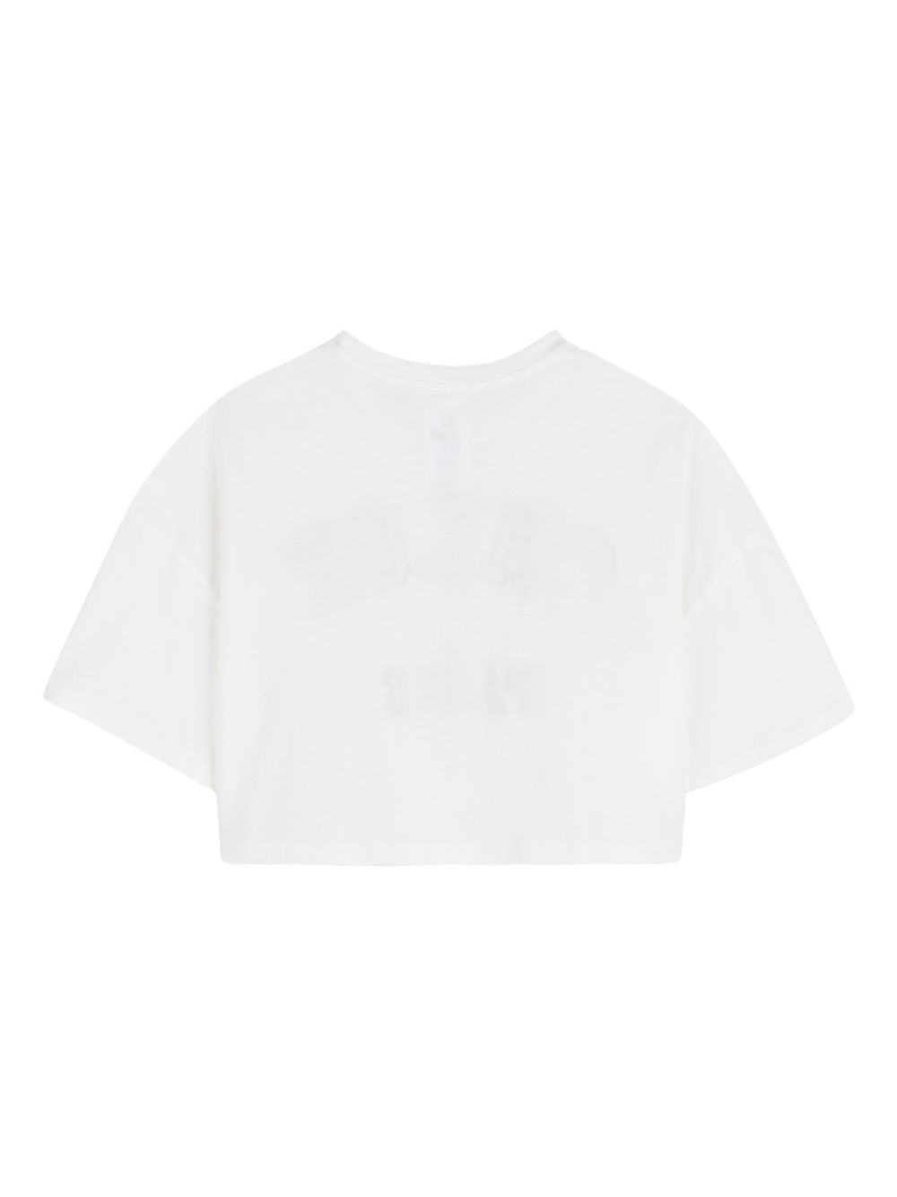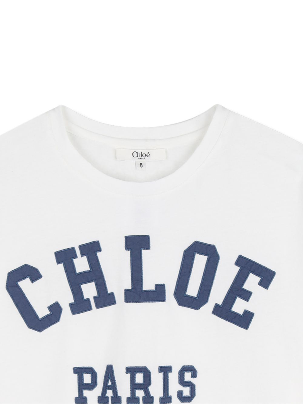 T-shirt in cotone corto con dettagli applicati bianco sporco e blu
