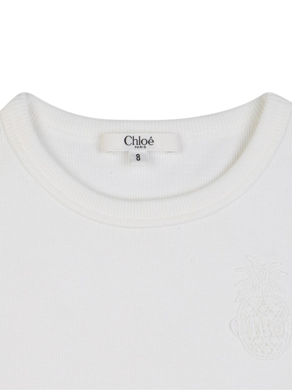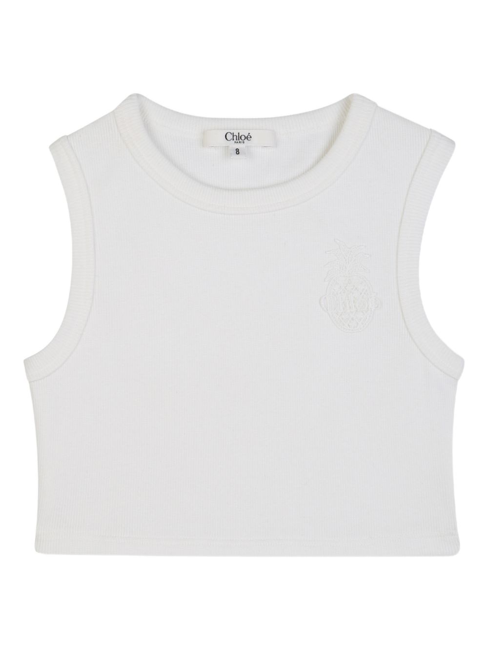 Top girocollo senza maniche con dettagli ricamati bianchi