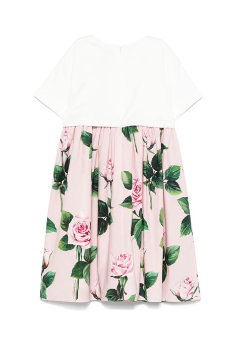 Abito rosa cipria, chiusura lampo posteriore, nascosta stampa floreale,girocollo e maniche corte