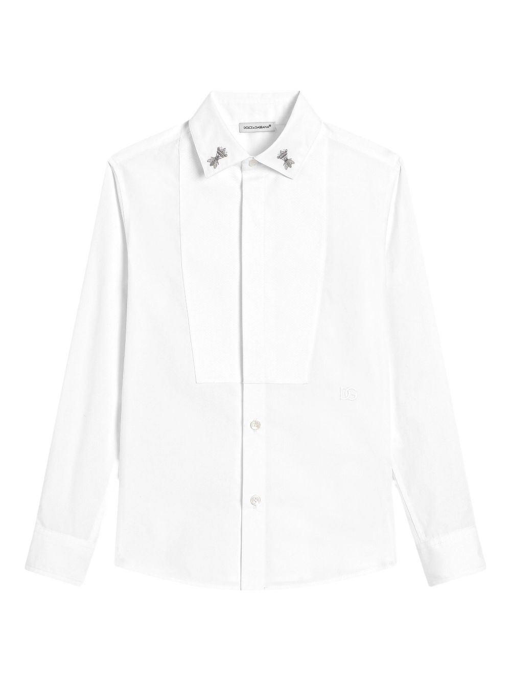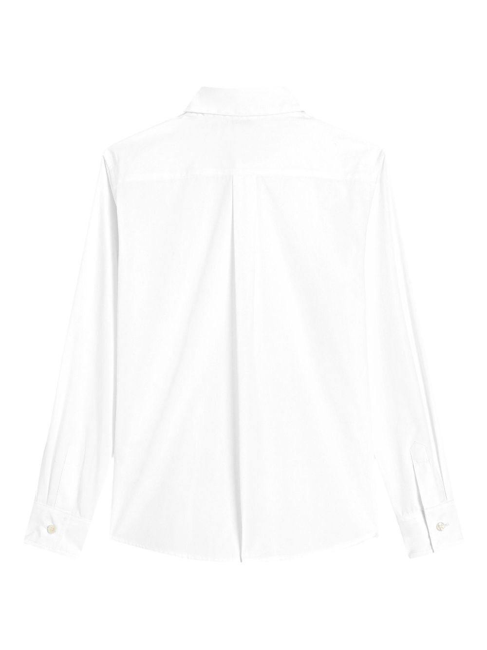 Camicia in bianco ottico, maniche lunghe, chiusura con bottoni, colletto a punta con ricamo