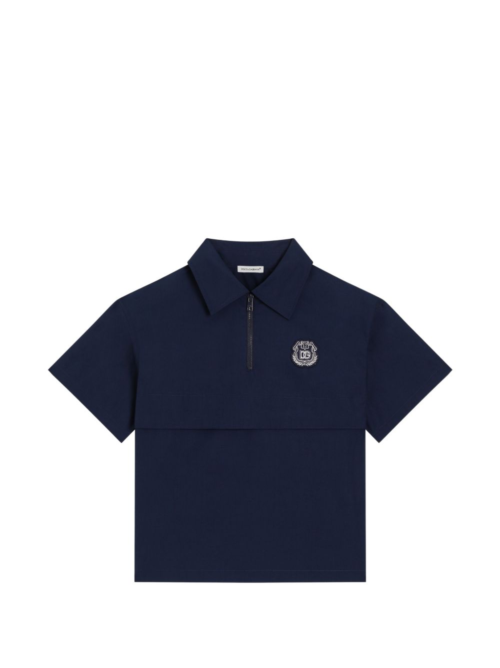 overshirt blu in cotone, manica corta, logo ricamato