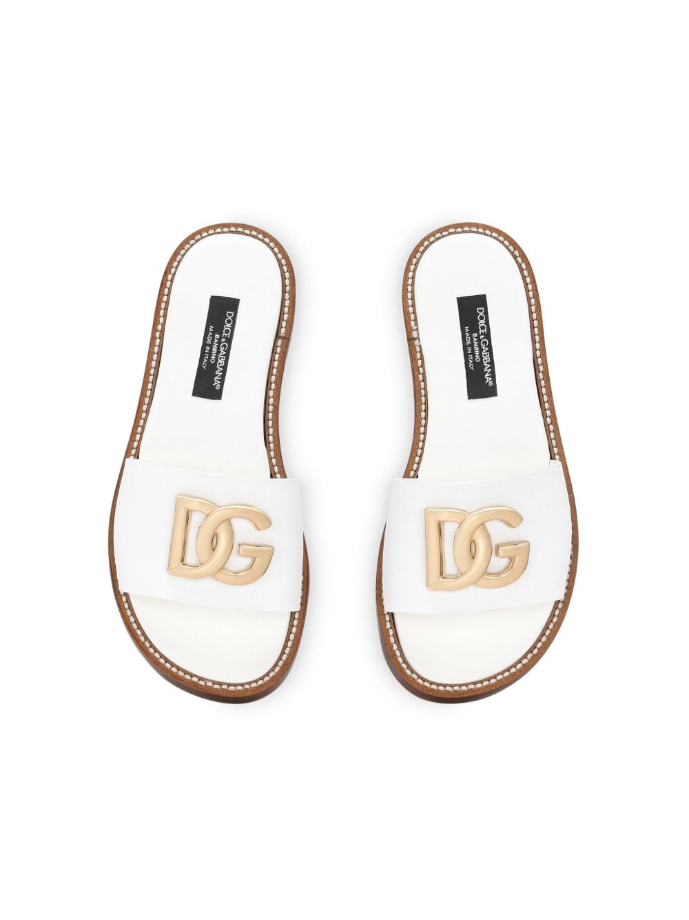 pelle di vitello bianca, placca con logo color oro, punta aperta, plantare con marchio, tacco basso a strati, suola in pelle, stile slip-on