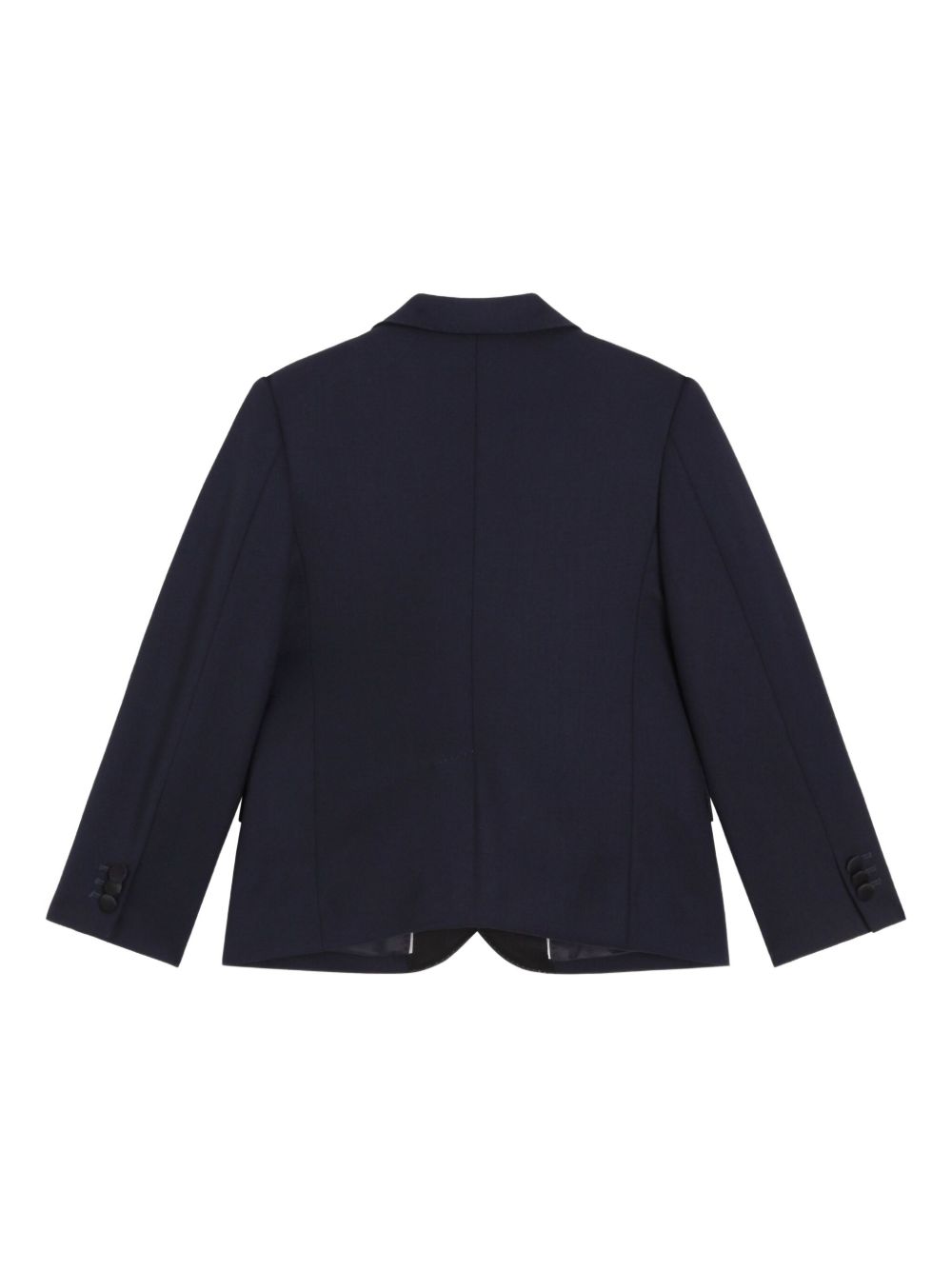 blu molto scuro, monopetto, revers a lancia, chiusura con bottoni