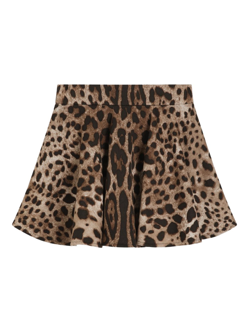 motivo leopardato marrone, dettaglio logo a trapezio, orlo svasato