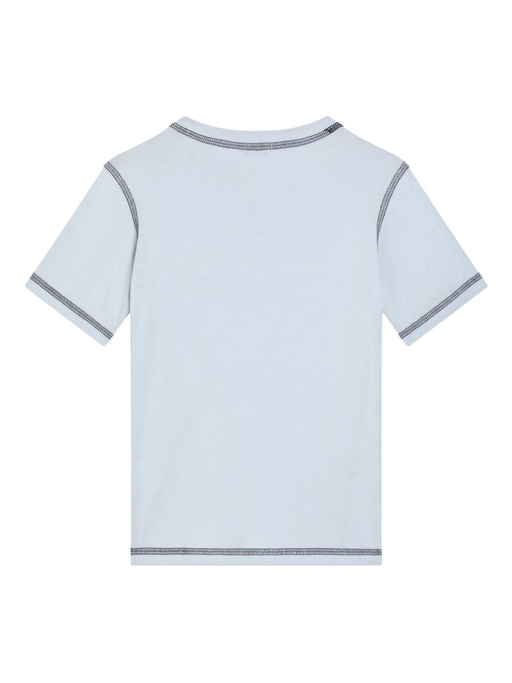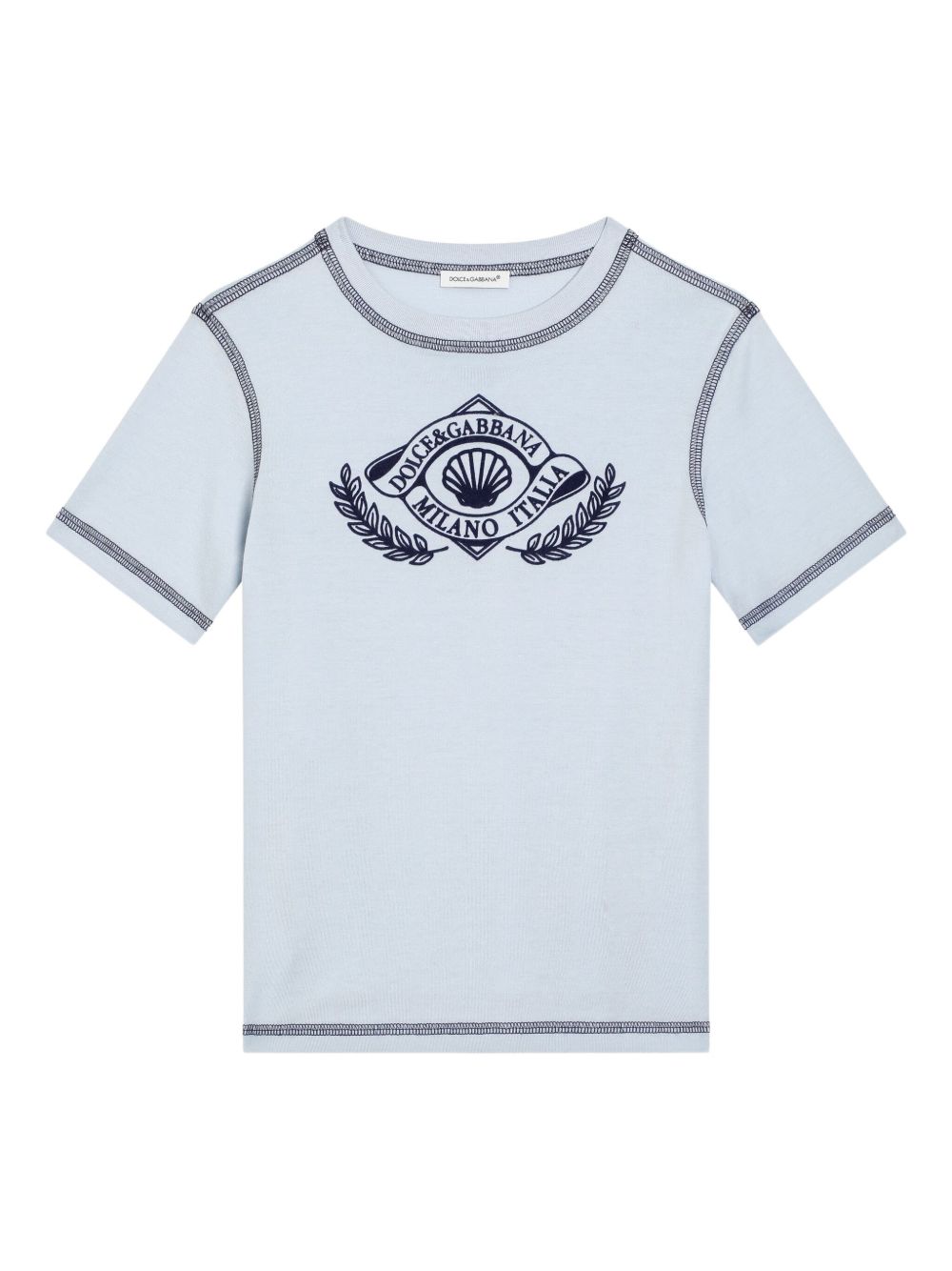 T-shirt girocollo, azzurro, maniche corte, orlo dritto.
