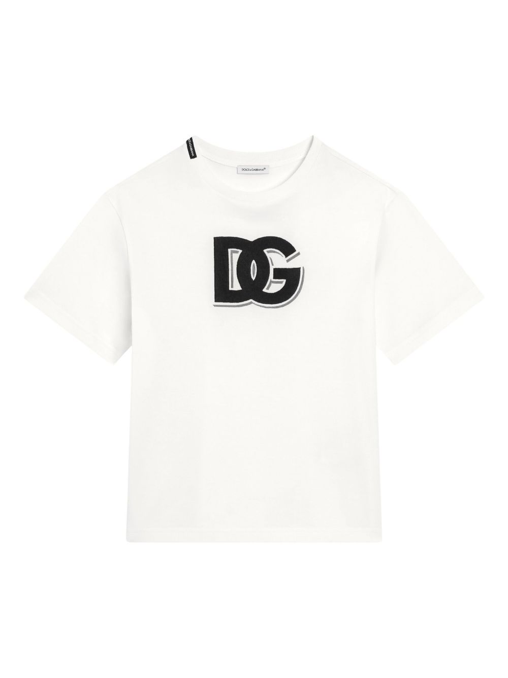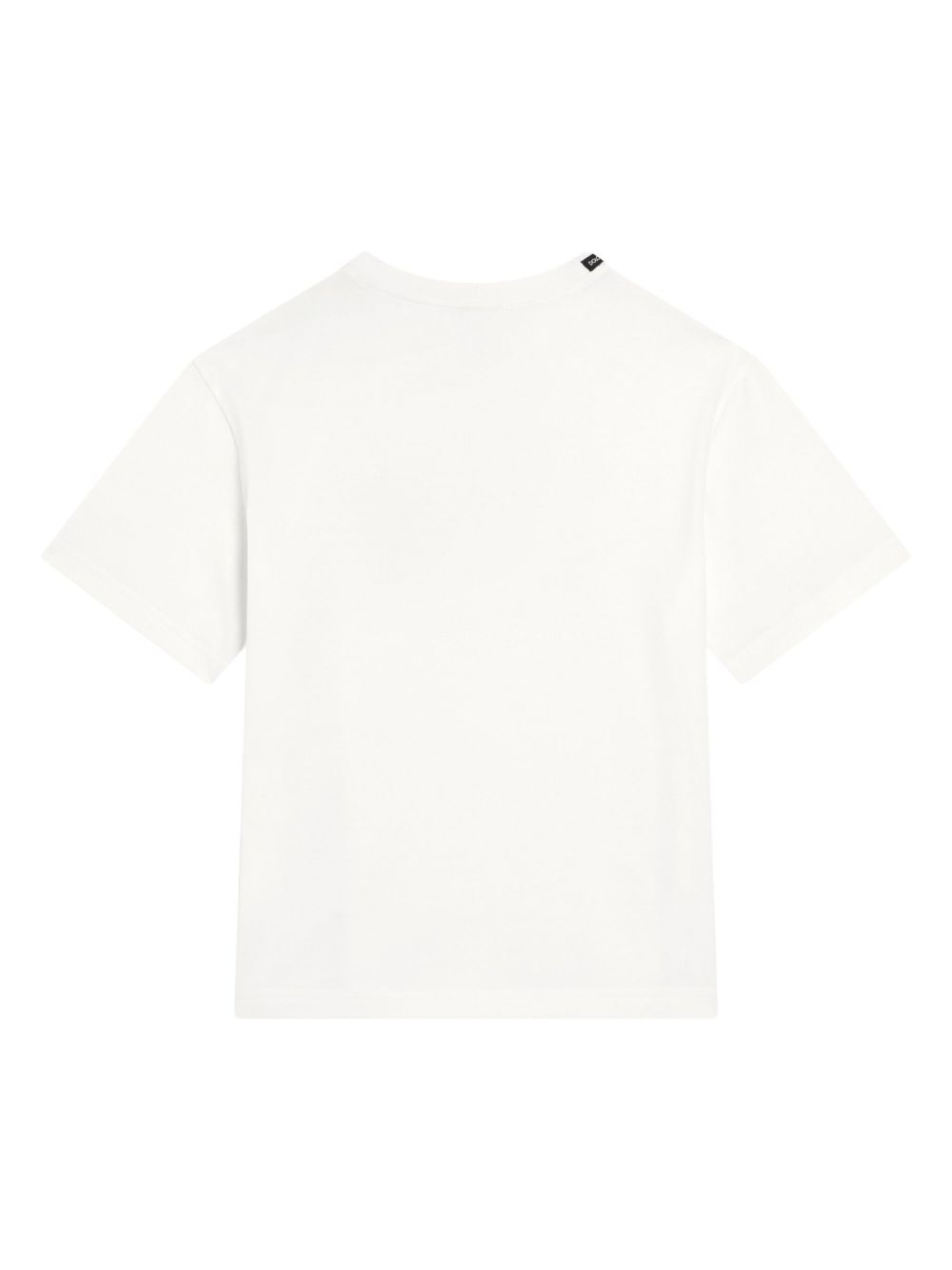 T-shirt girocollo, bianco, maniche corte, orlo dritto.
