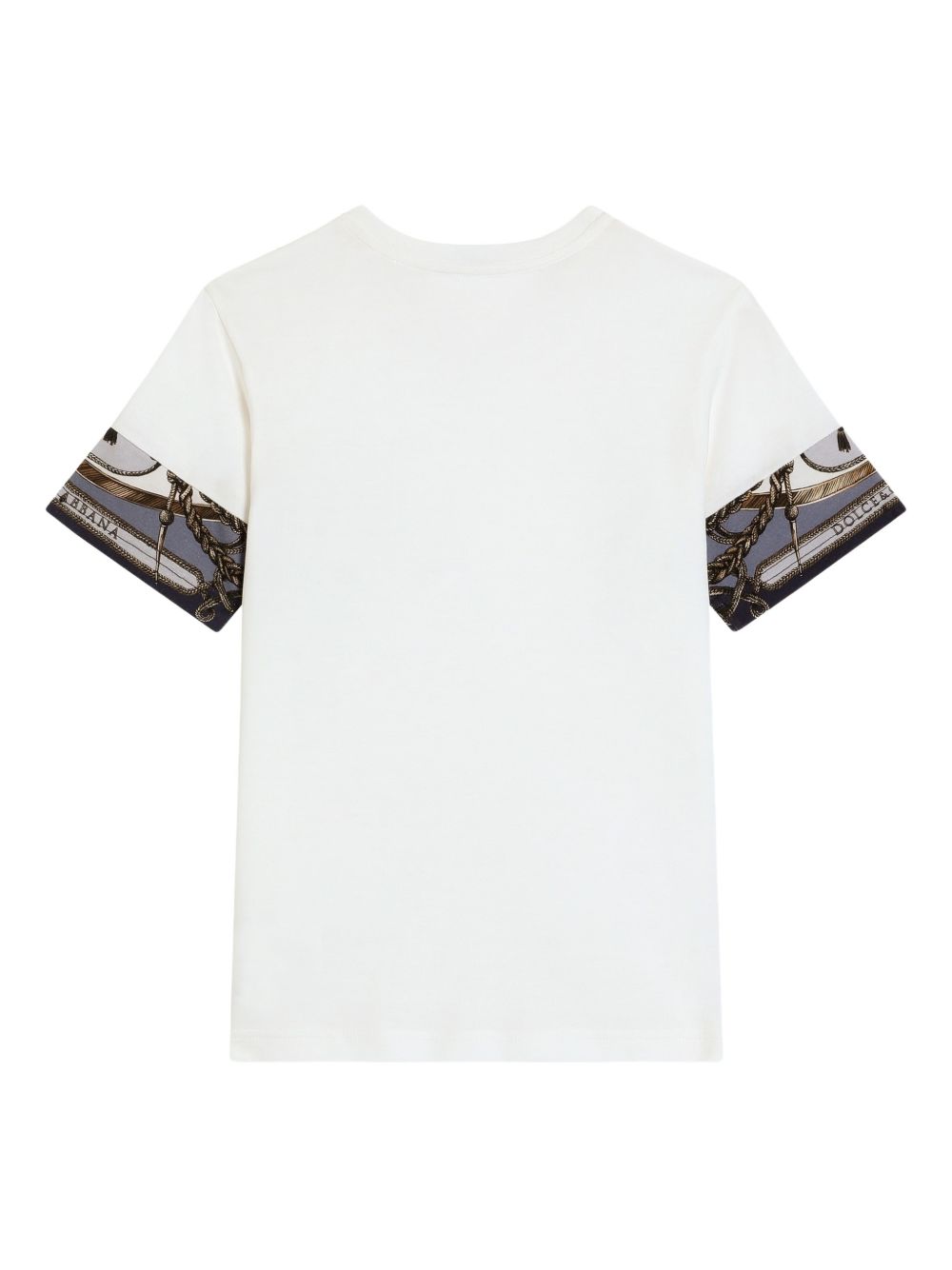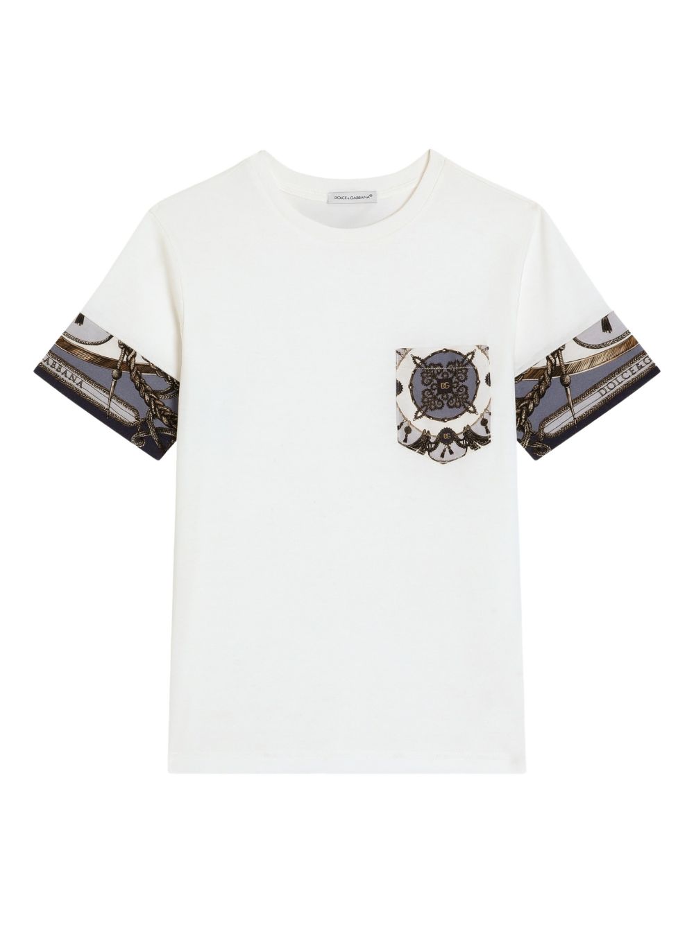 manica corta bianca con tasca applicata, girocollo, maniche corte, stampa a corda