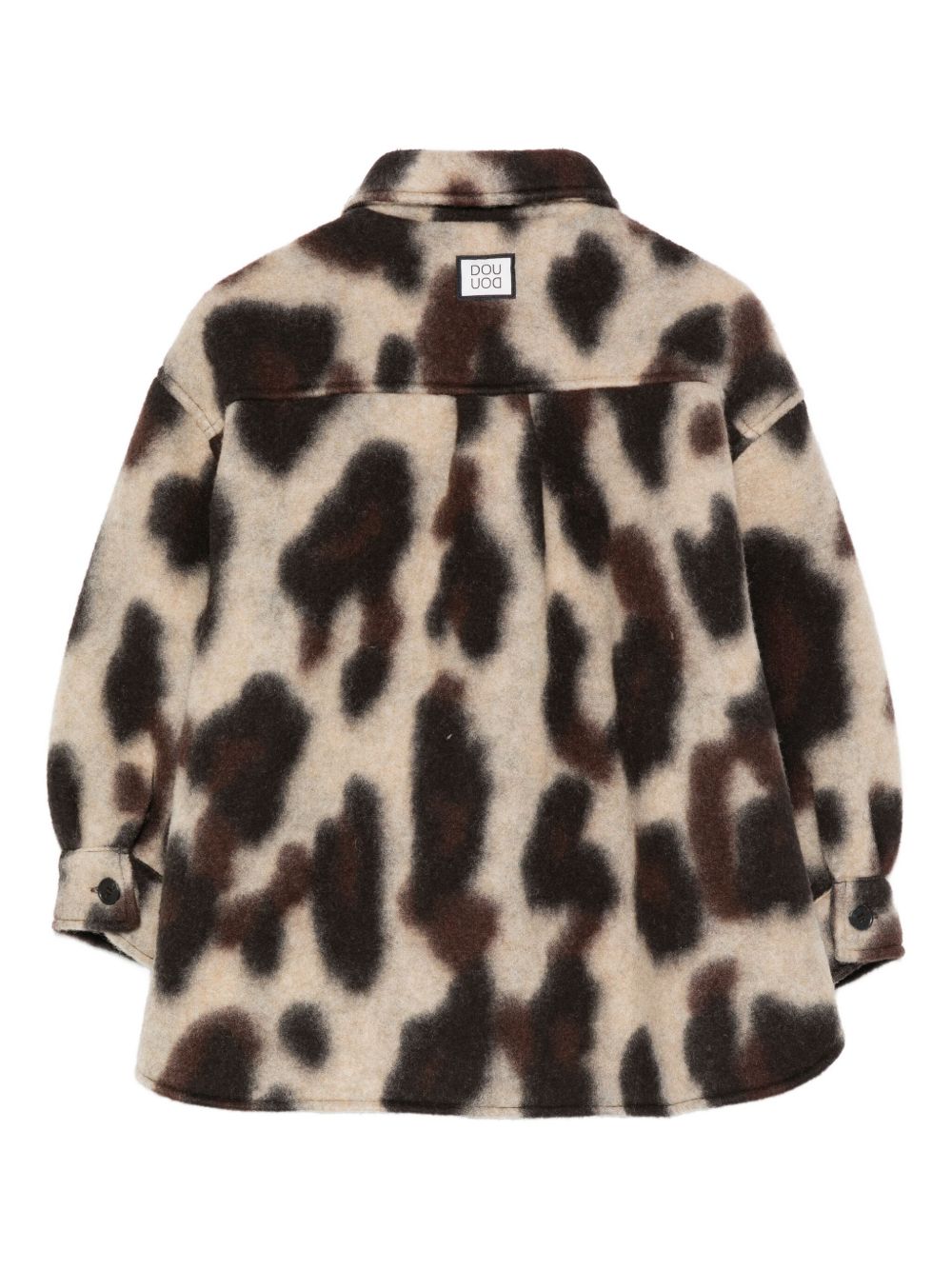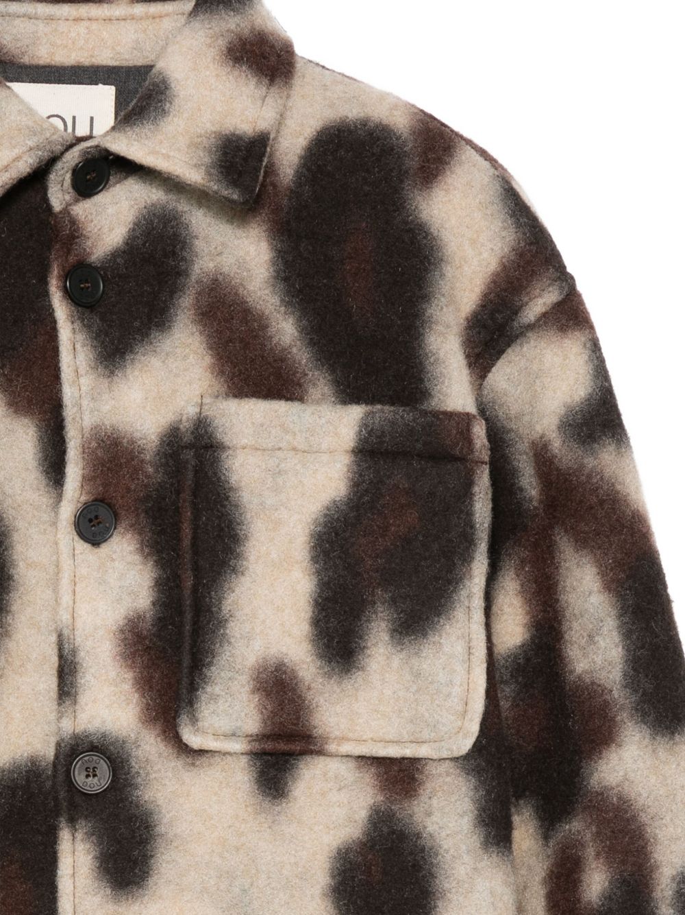 Giacca con stampa animalier, marronebeige, chiusura a bottoni, tasca applicata, maniche lunghe, colletto a punta.