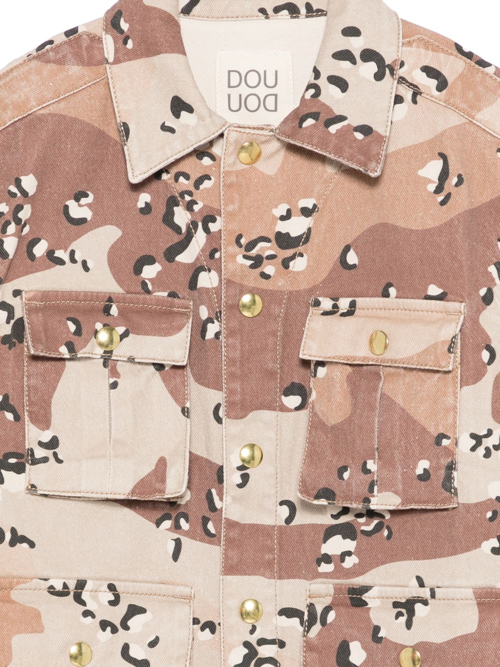 Gilet con stampa camouflage, chiusura con bottoni, tasche frontali, senza maniche.