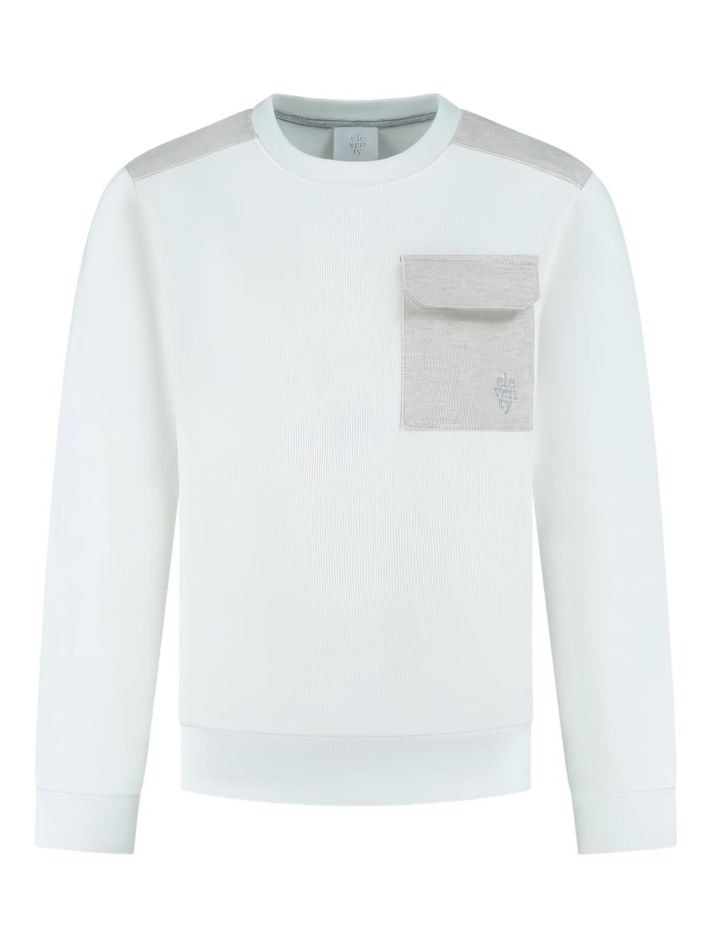 Felpa design a pannelli bianchi, tasca sul petto, girocollo, maniche lunghe, orlo a coste