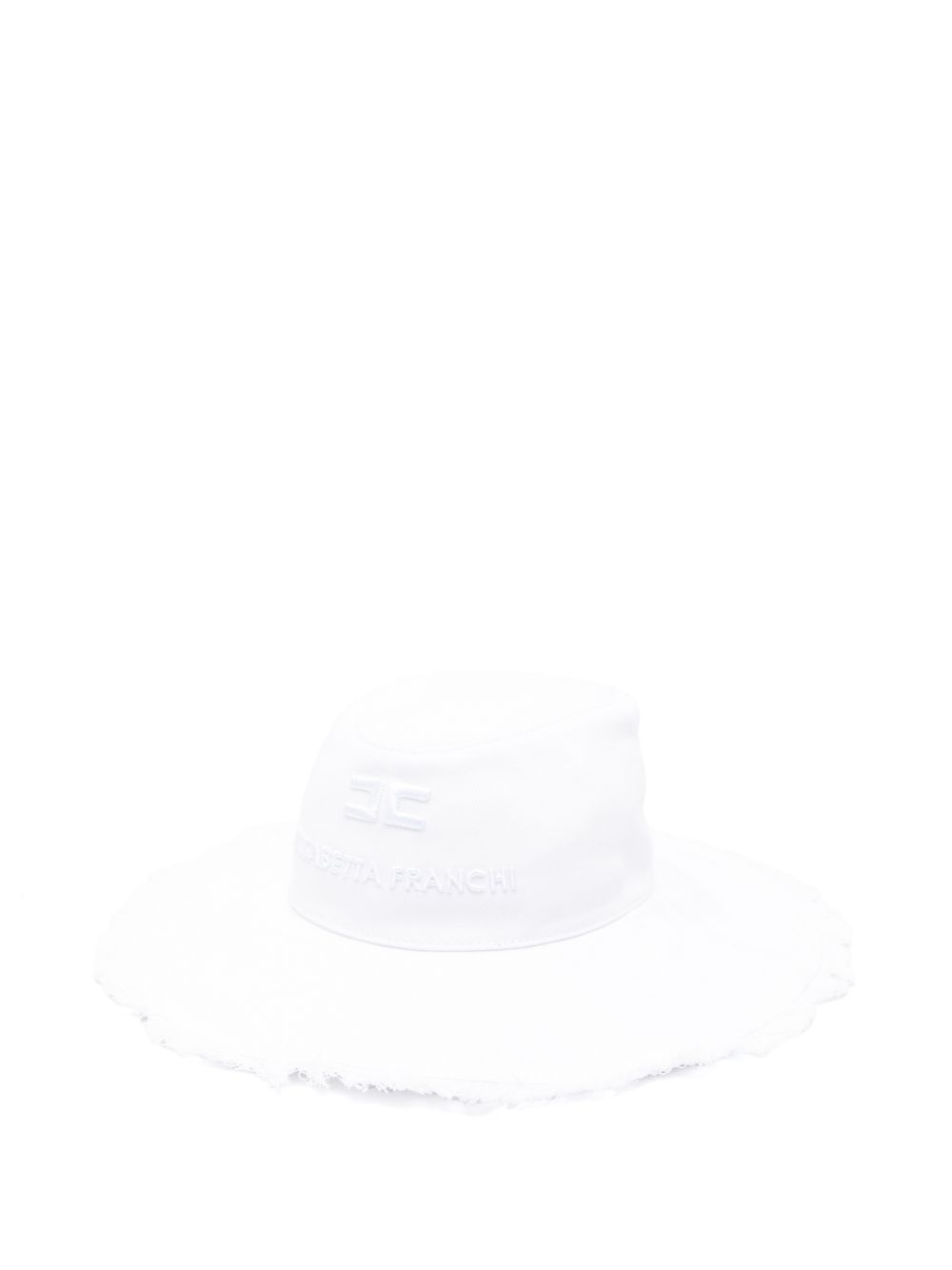 Cappello bianco con fiocco con visiera sfilacciata, dettaglio lettering