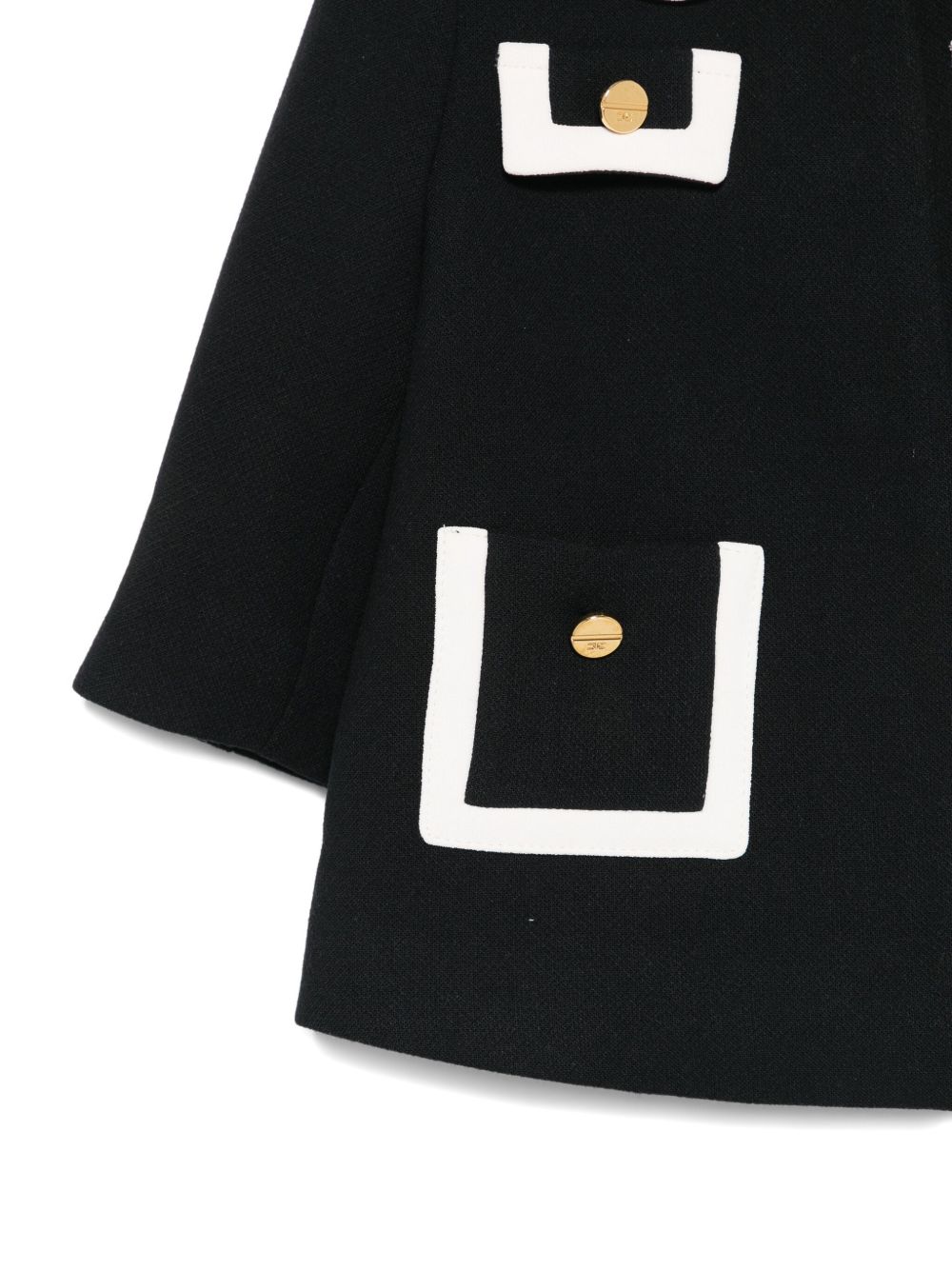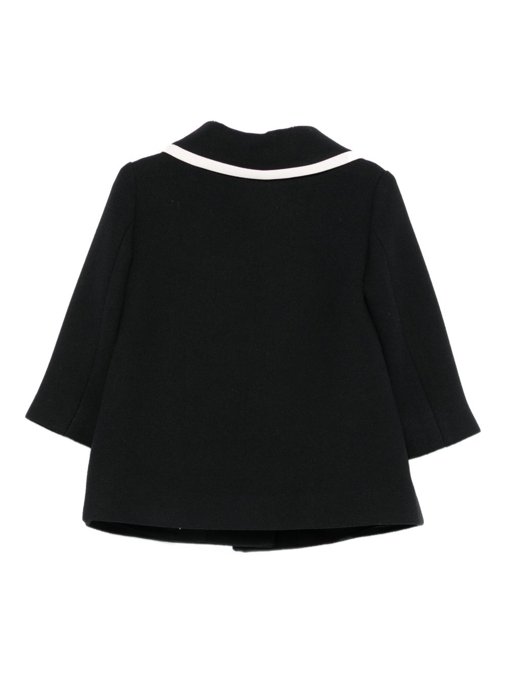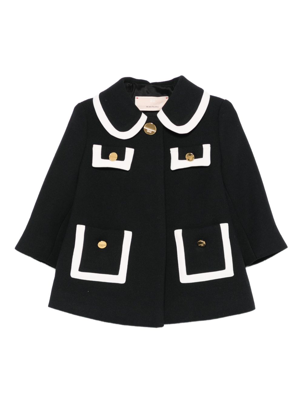 Cappotto nero, design imbottito, chiusura con zip, scollo con colletto, maniche lunghe, tasche a filetto.