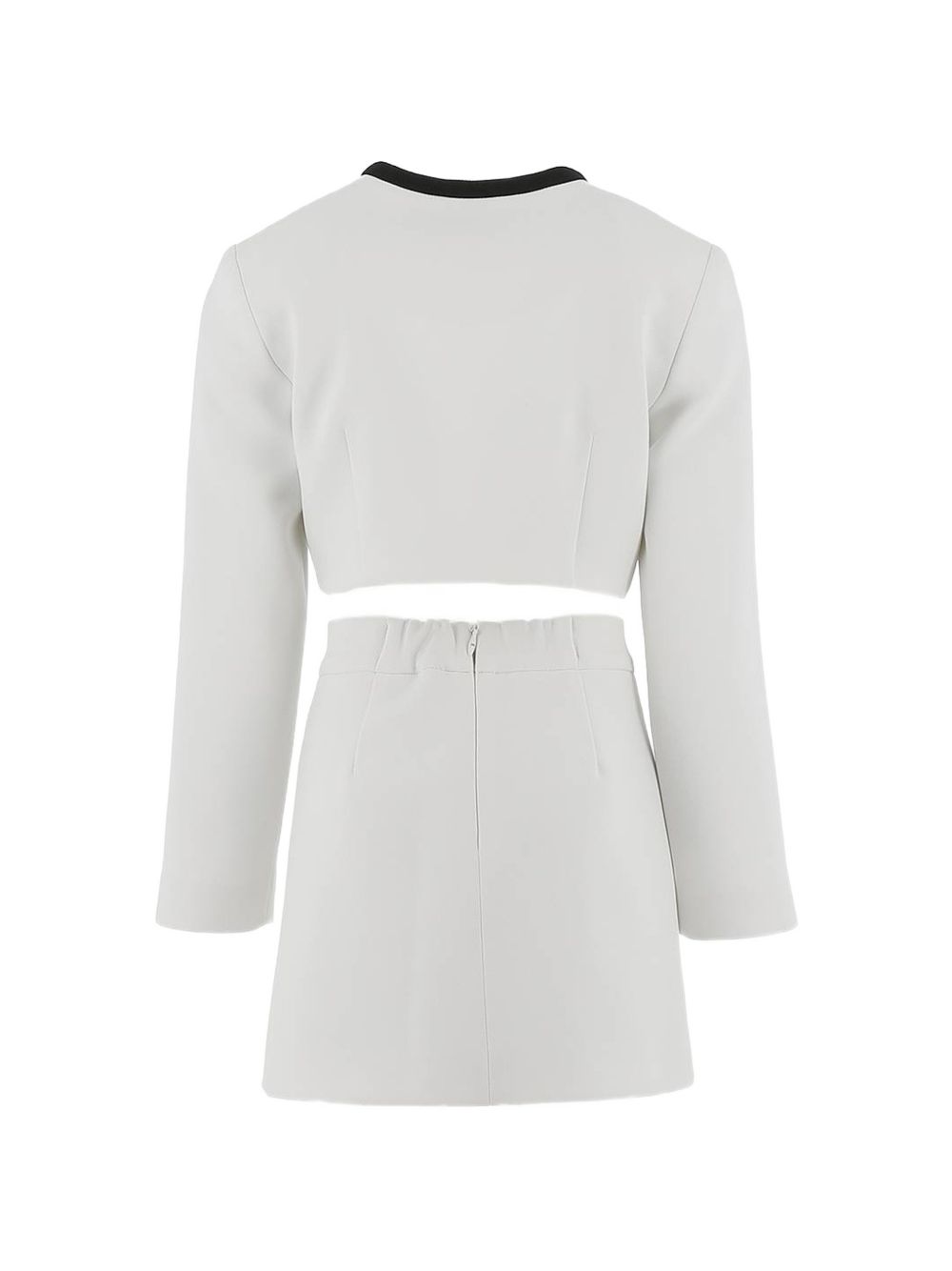 Completo bianco e nero, dettaglio logo, chiusura a bottoni, scollo quadrato, maniche lunghe