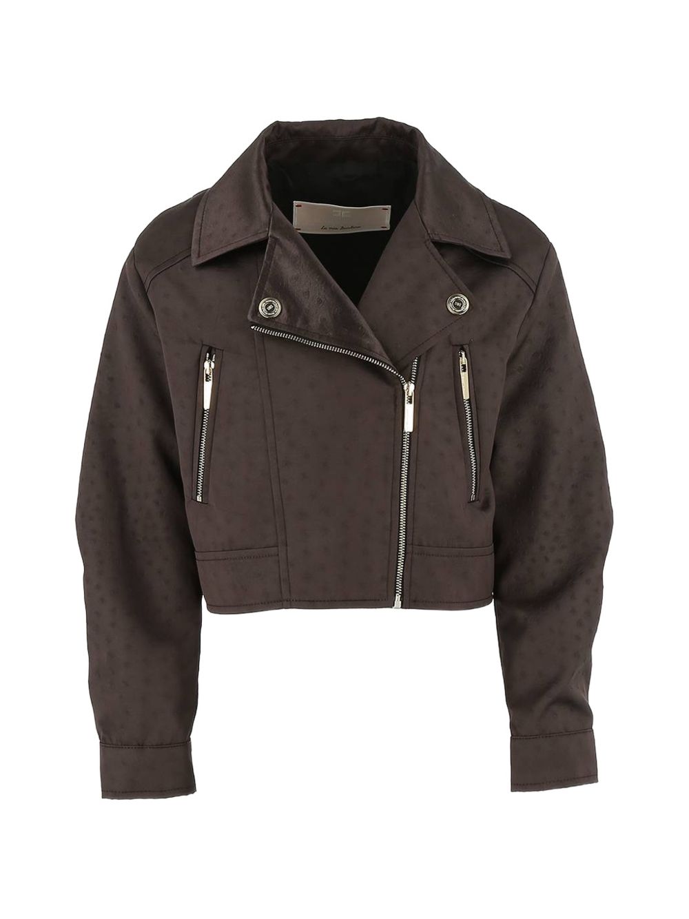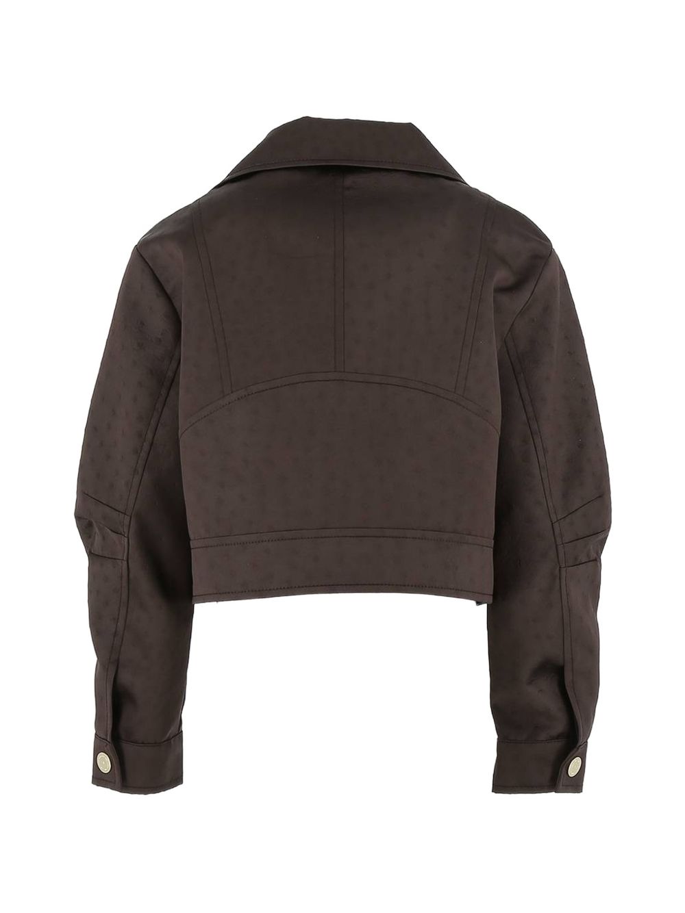 Giacca marrone, design a fantasia, chiusura frontale con zip, maniche lunghe, polsini con abbottonatura a pressione