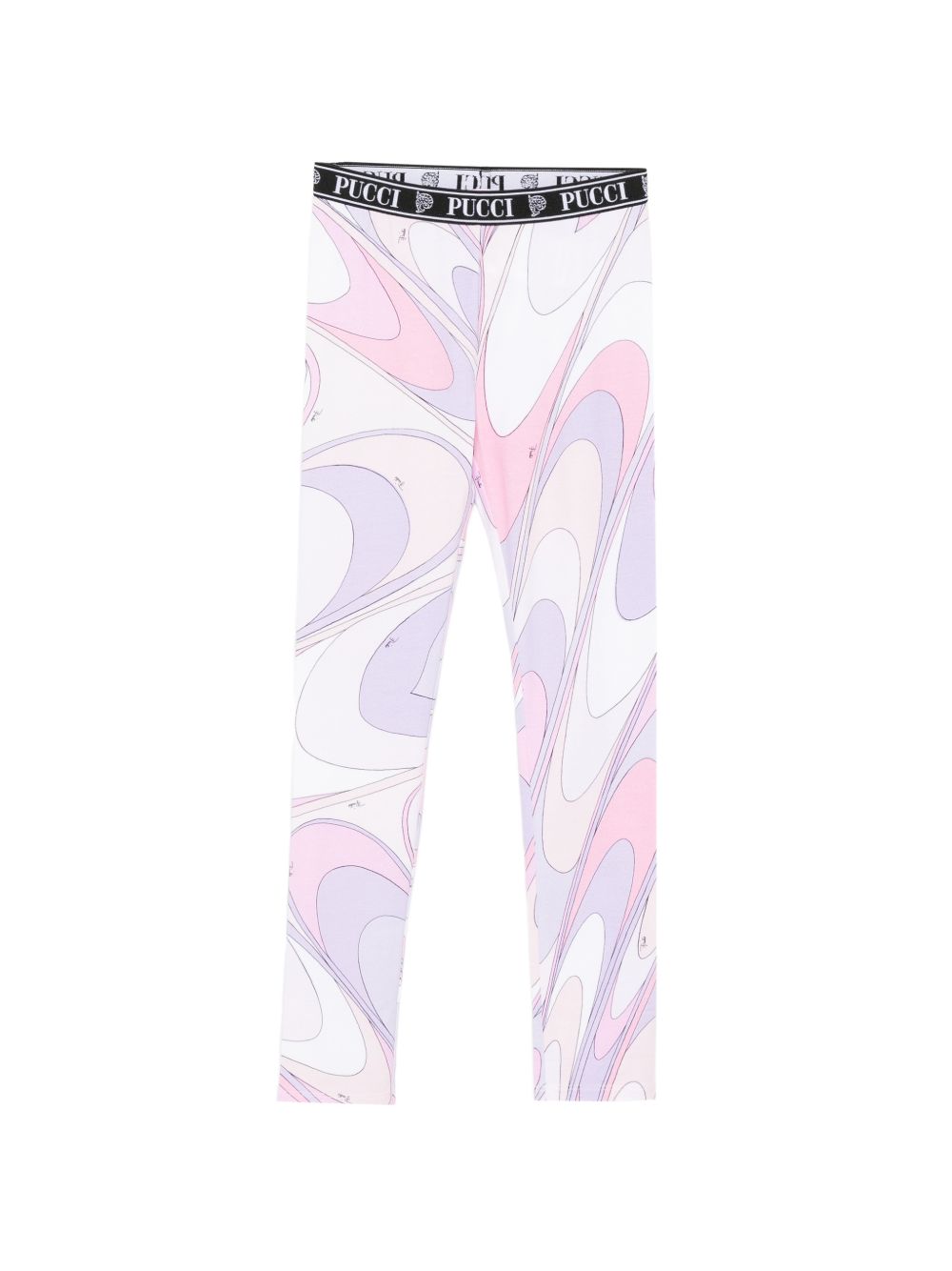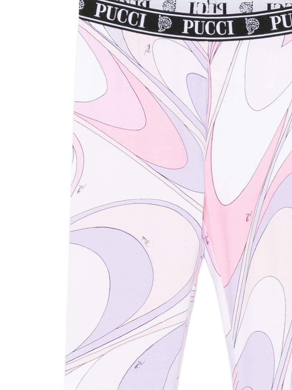 Leggings con vita elasticizzata, logo ricamato a stampa marmorizzata rosa/lilla.
