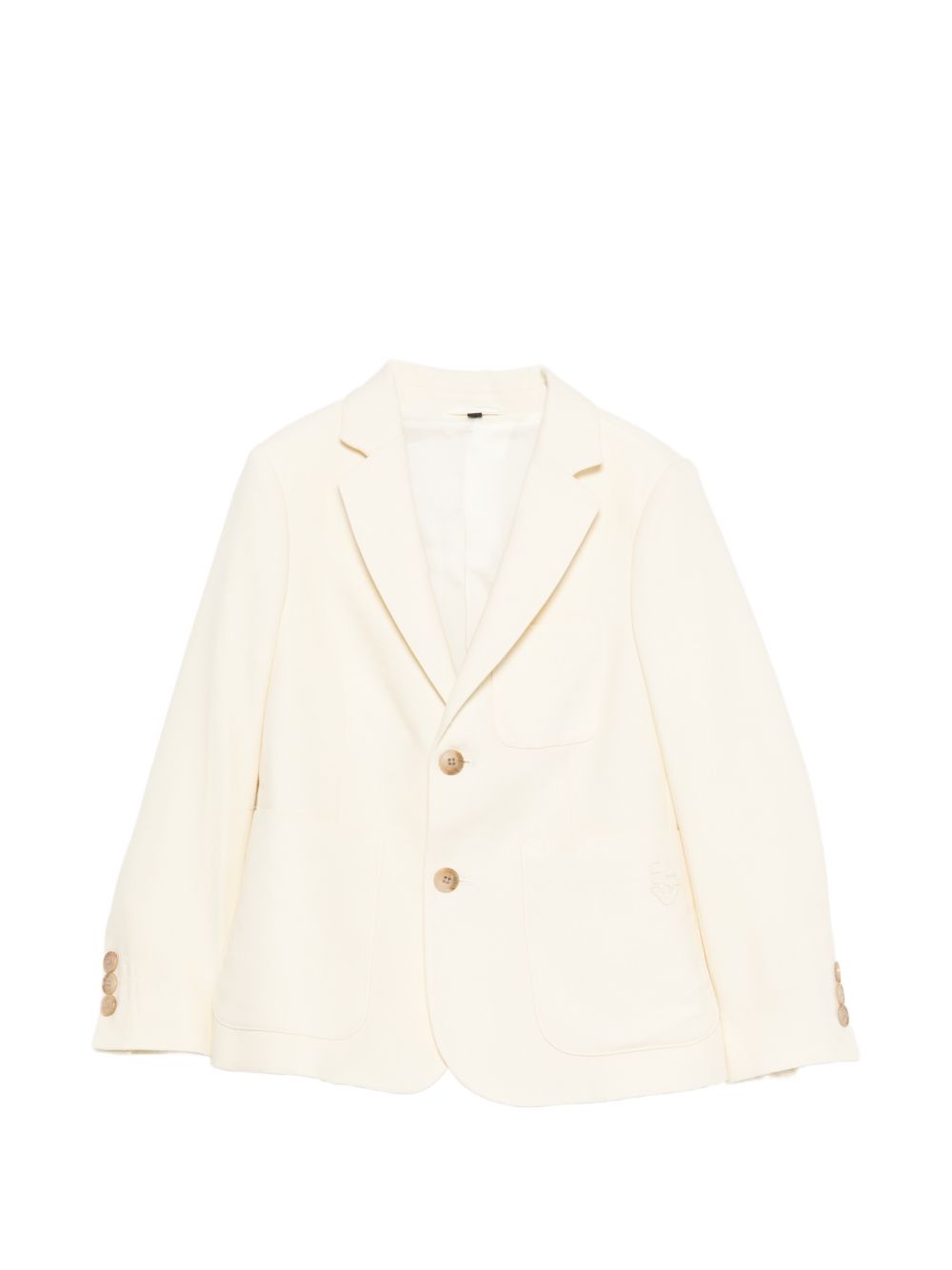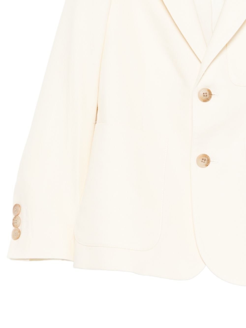 Giacca monopetto, bianco opaco, tasca applicata, chiusura a bottoni, revers classici, orli con abbottonatura, tasca a filetto sul petto