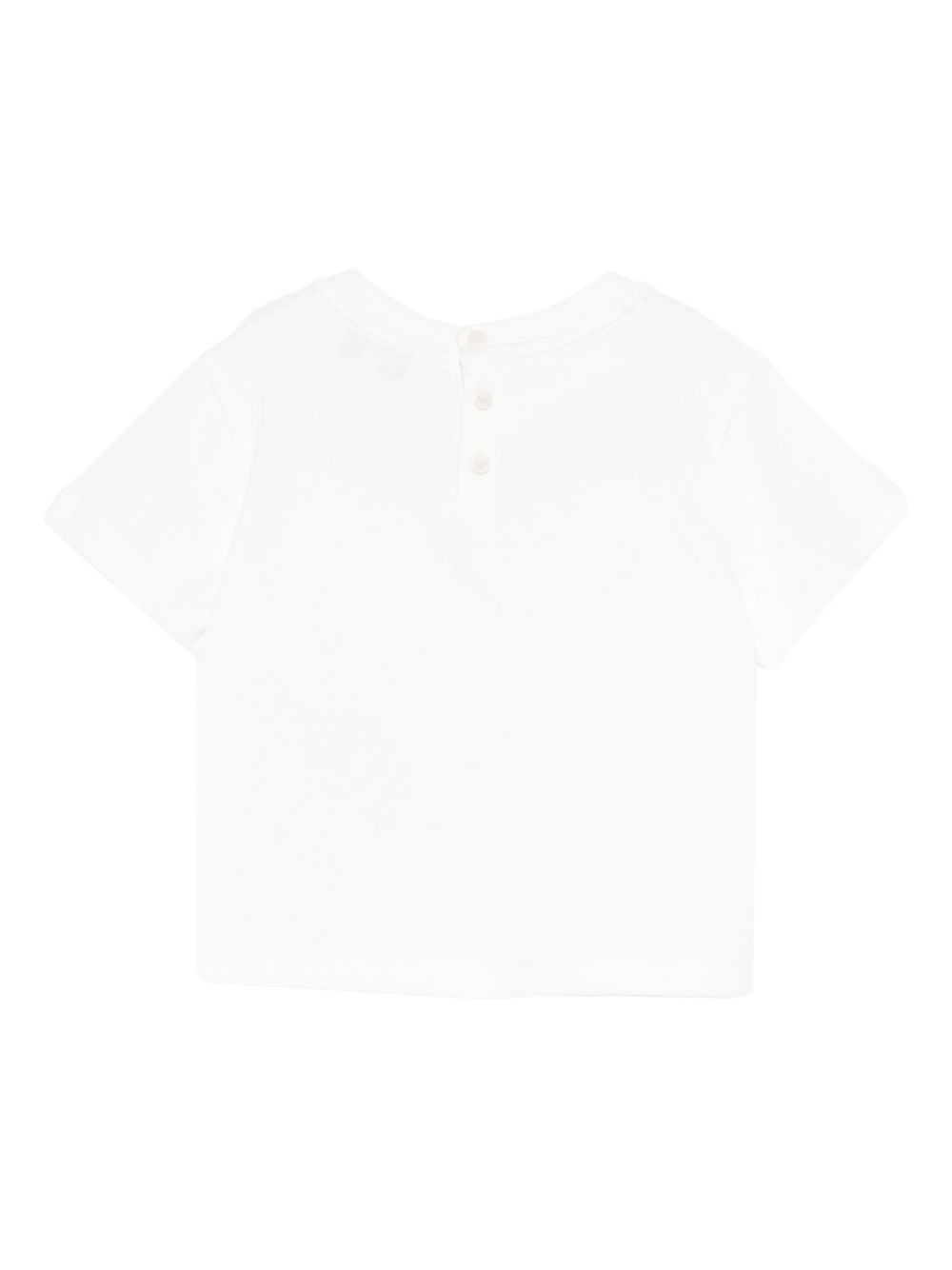 T-shirt con applicazione bianca scollo tondo maniche corte chiusura con bottoni sul retro