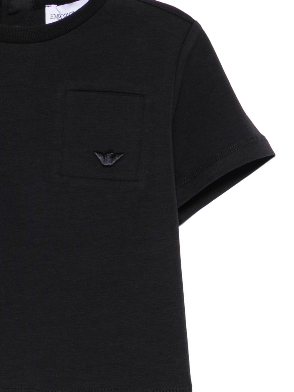 T-shirt con taschino, nero, dettaglio logo, girocollo, maniche corte, chiusura posteriore con abbottonatura