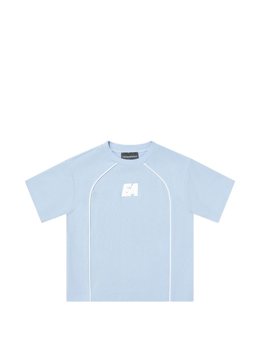 T-shirt celeste girocollo con dettaglio logo e maniche corte