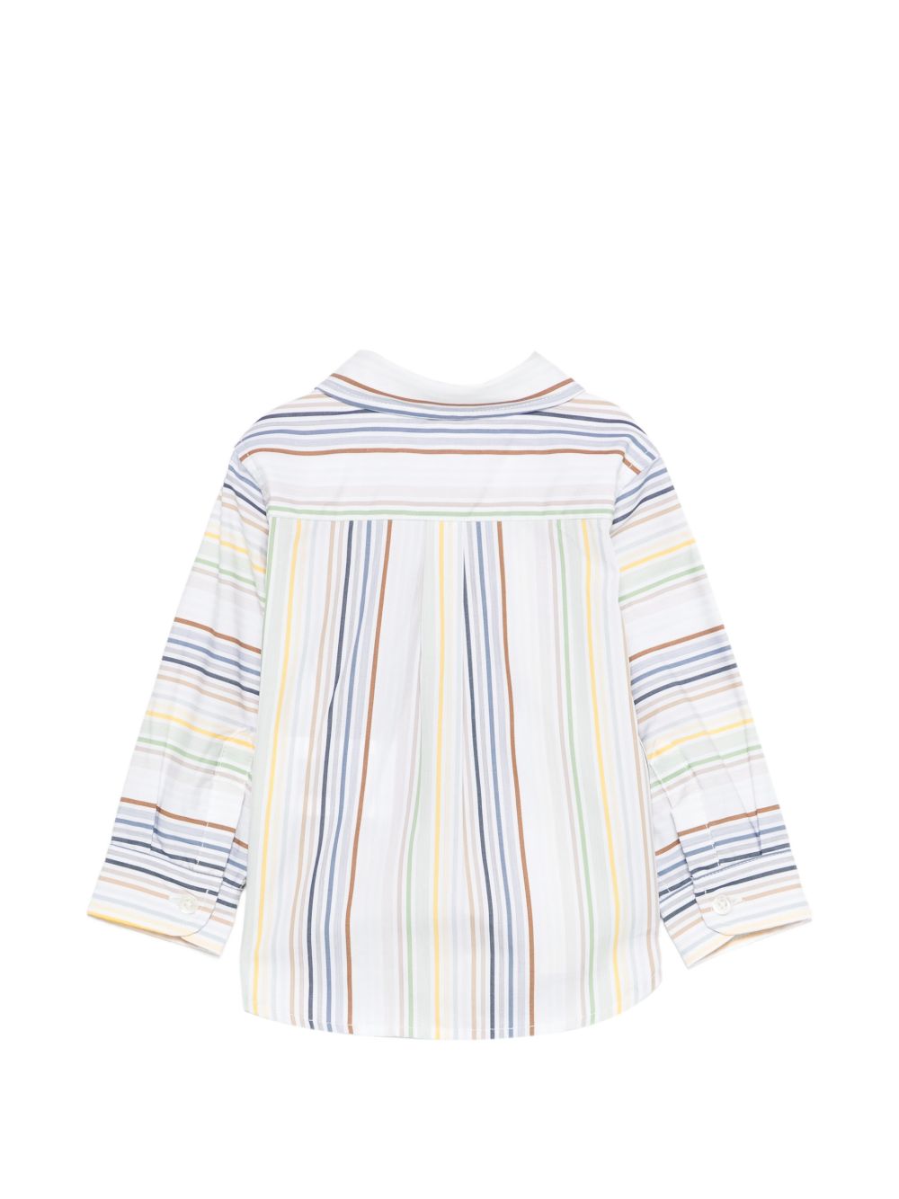 Camicia maniche lunghe a righe bianche, taschino sul petto, chiusura con bottoni.
