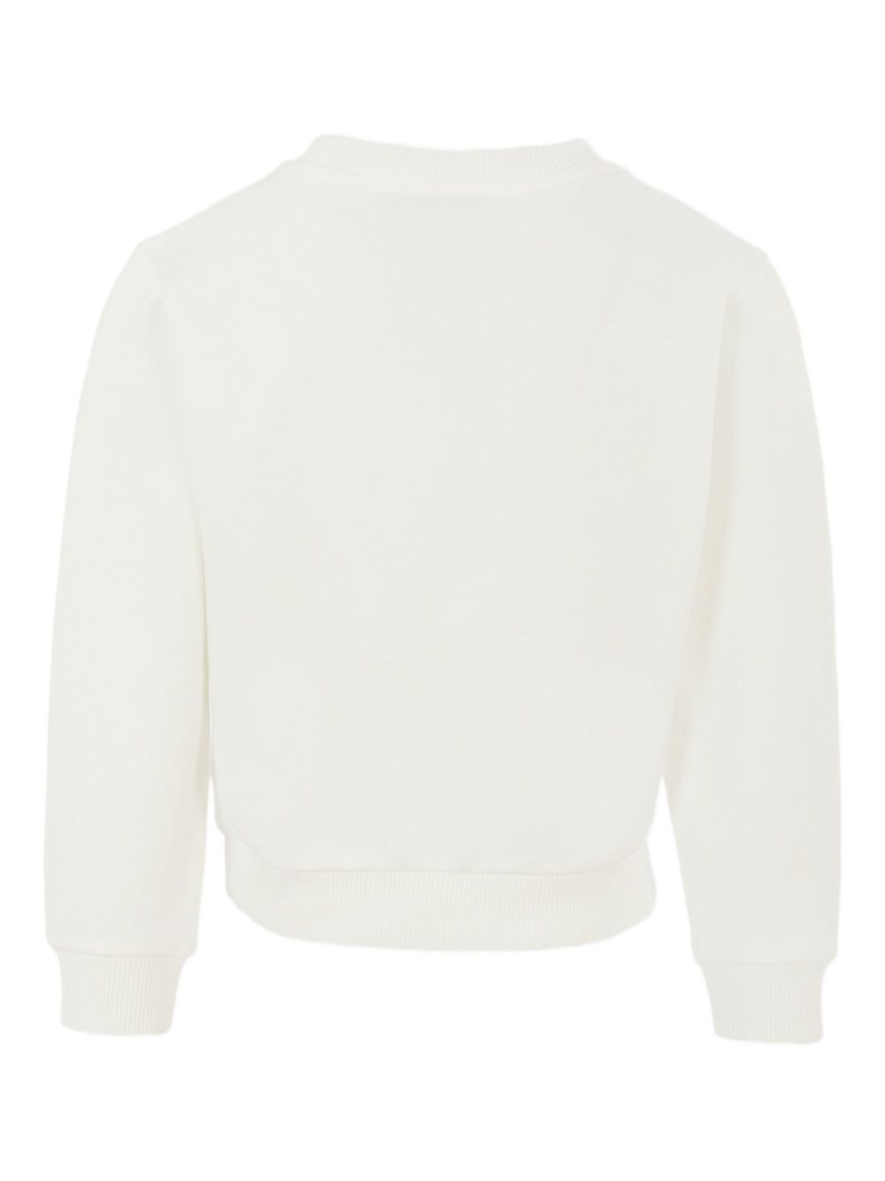 Felpa bianca, girocollo, motivo Pegaso, ghirlanda a fiori, cotone, dettagli ricamati.