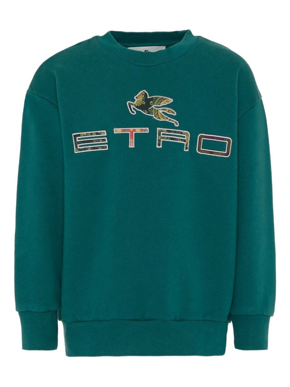 Felpa verde, con logo, girocollo, maniche lunghe, orli a coste.