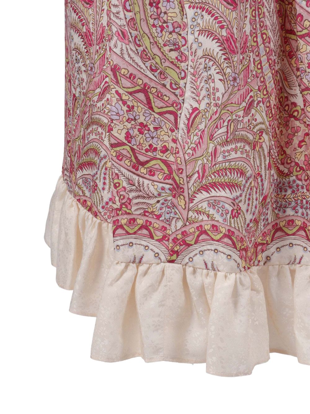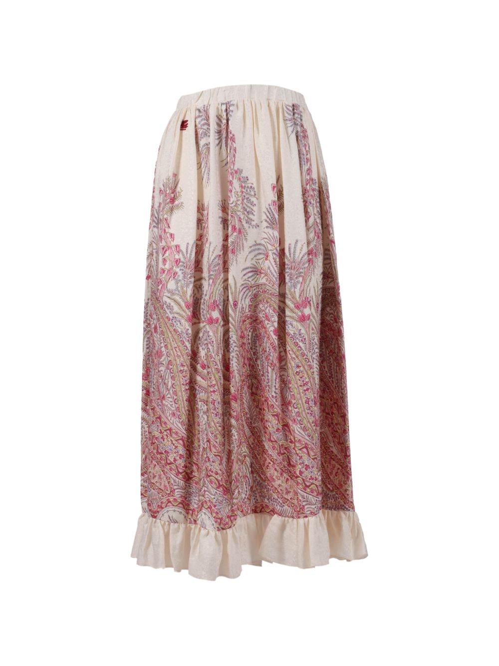 Gonna con volant, con stampa paisley a foglie ,beige e rosa.