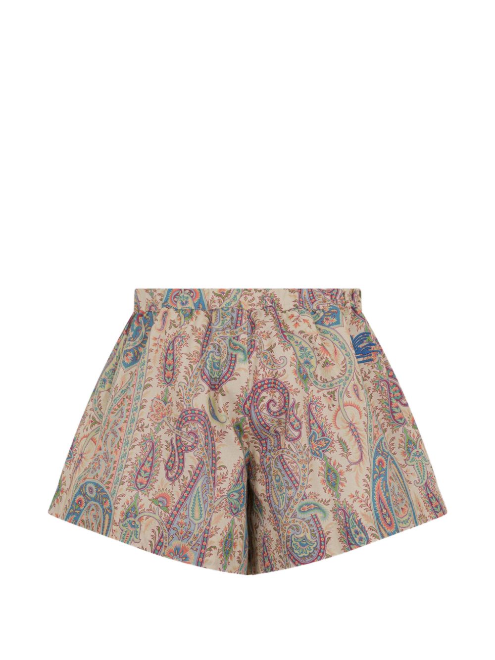 Shorts elastico in vita con stampa paisley beige e multicolore.