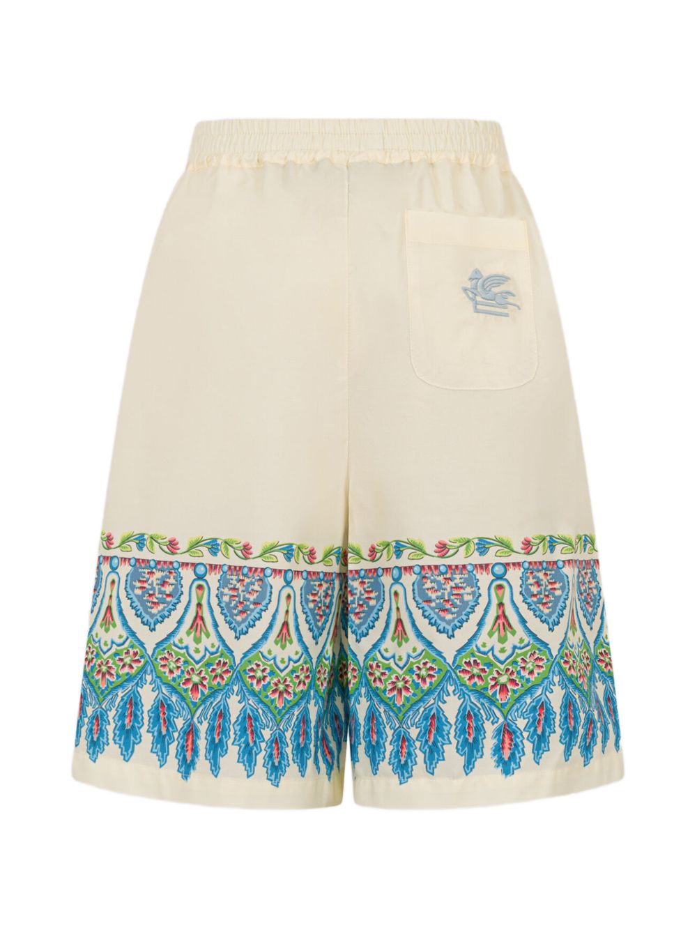 Shorts con stampa floreale beige e multicolore, tasca posteriore applicata, coulisse in vita.