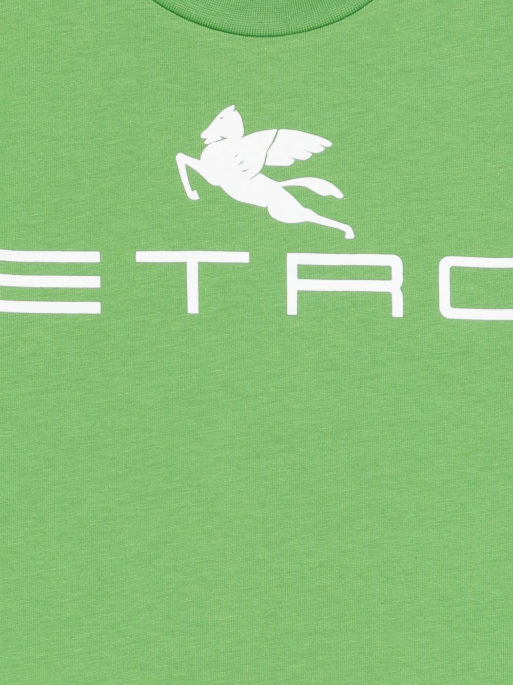 T-shirt in cotone verde con logo centrale, orlo dritto, maniche corte